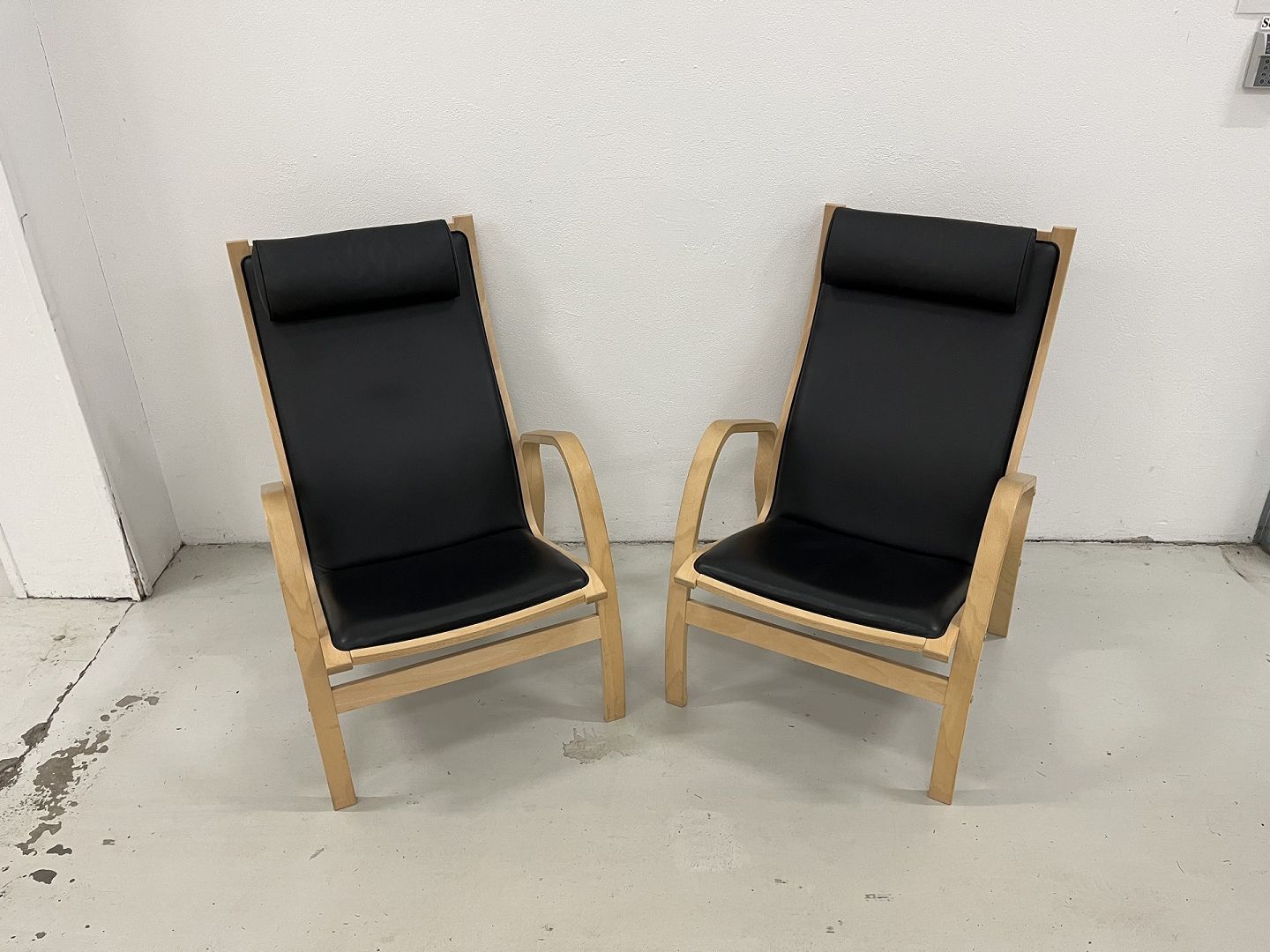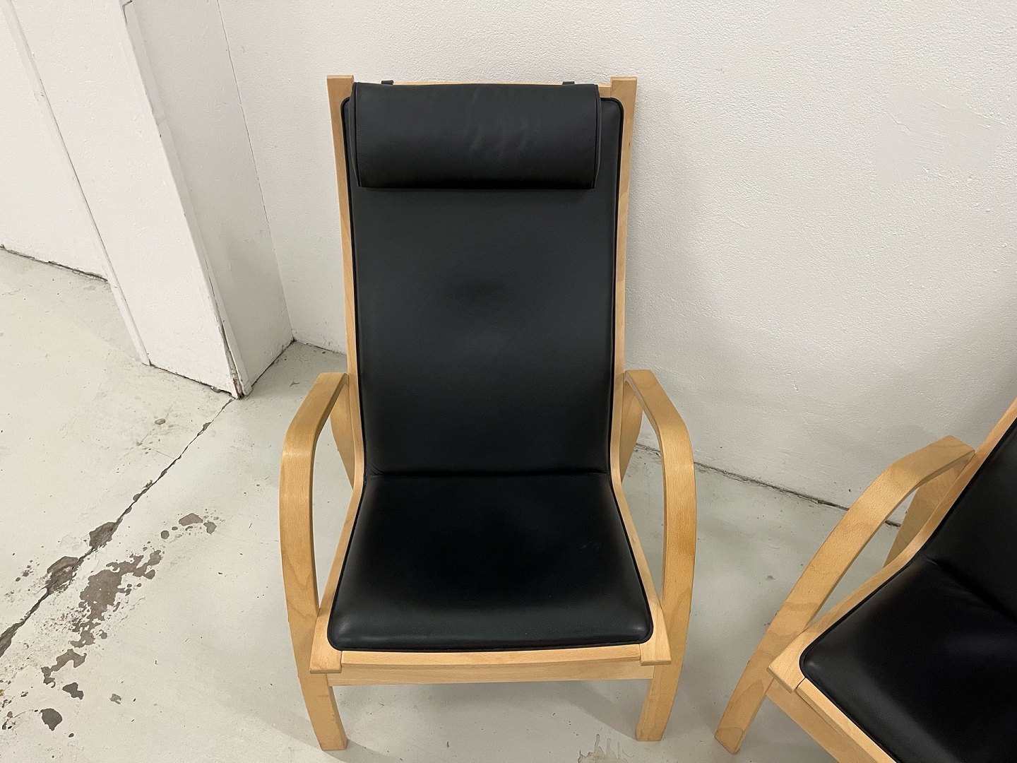 Finn østergaard Stühle in schwarzem Handschuhleder und mit einem Rahmen aus seifenbehandelter Buche. Neupreis 15.600,-