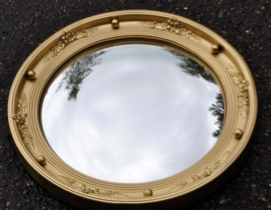 Bronzener Butlerspiegel, England, 19. Jahrhundert. Mit konkavem Glas. Durchmesser: 45 cm.