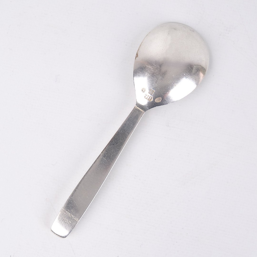 Text zugänglich auf Dänische: Marmeladeske i mønster nr. 29 af Evald Nielsen. Tretårnet sølv, stemplet. Dansk sølvarbejde i klassisk og elegant design.