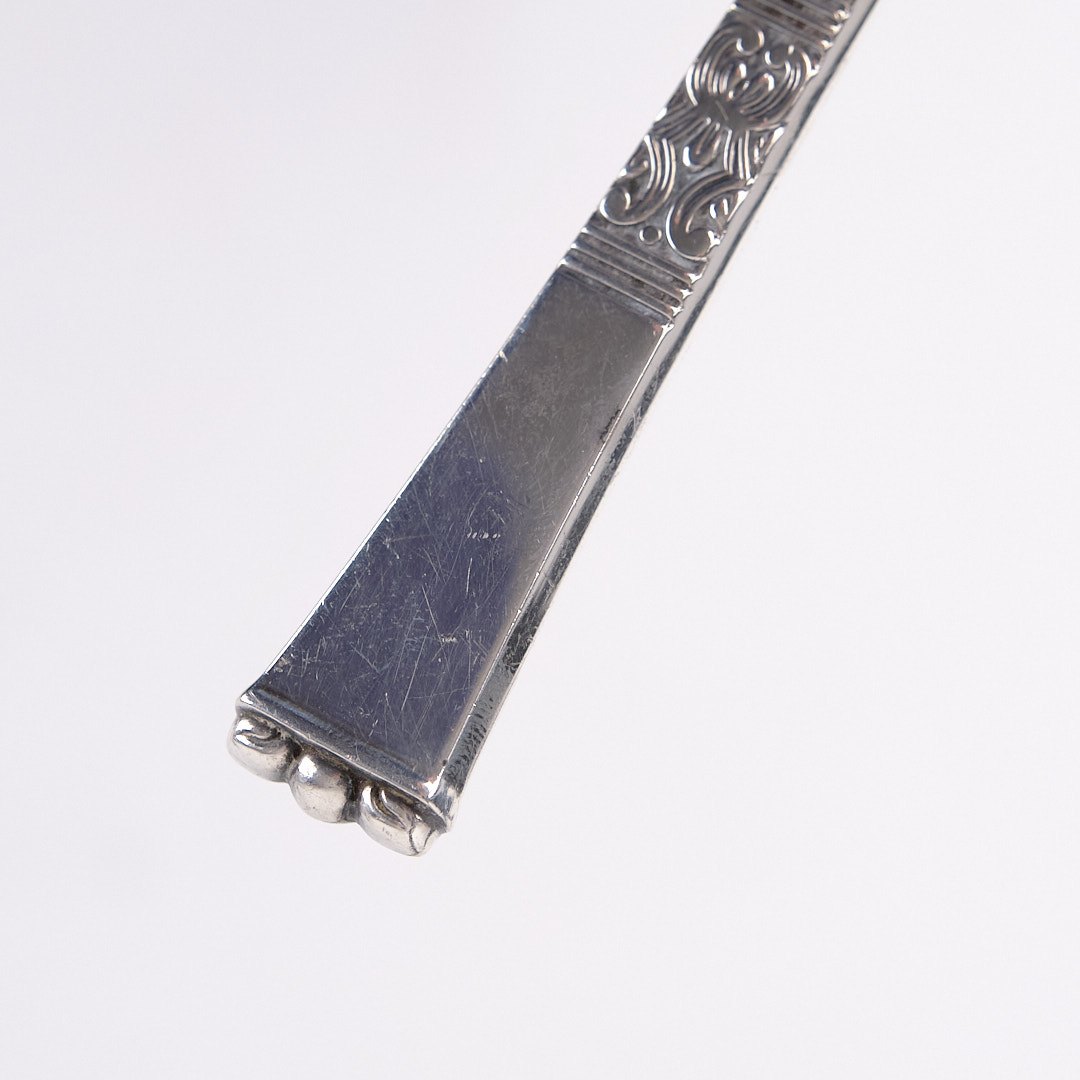 Text zugänglich auf Dänische: Øloplukker i Rigsmønstret design af Poul Frigast. Sølv 830s fra 1930’erne.