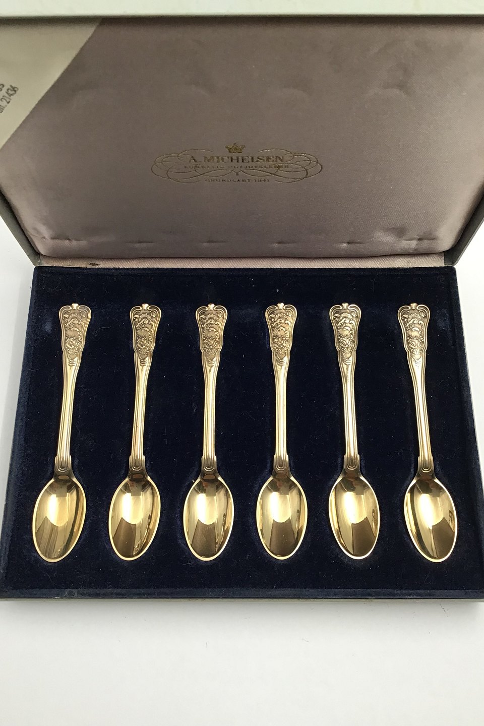 Anton Michelsen Sterling Sølv Rosenborg Moccaske Sæt (6) Forgyldt