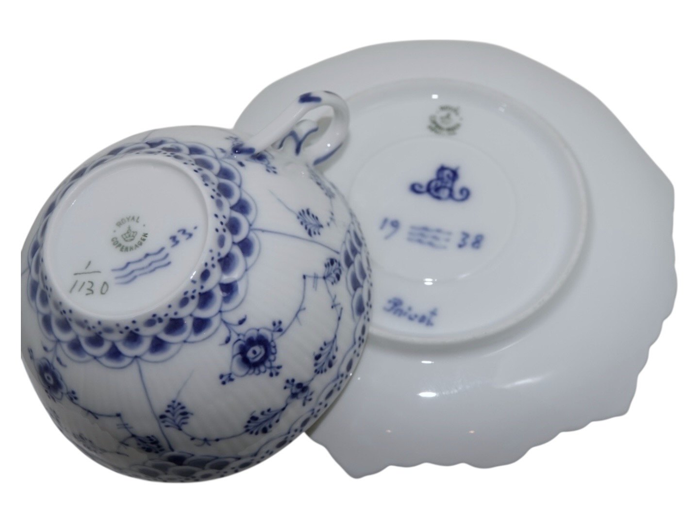 Royal Copenhagen Musselmalet Helblonde, tekop med tilhørende underkop.