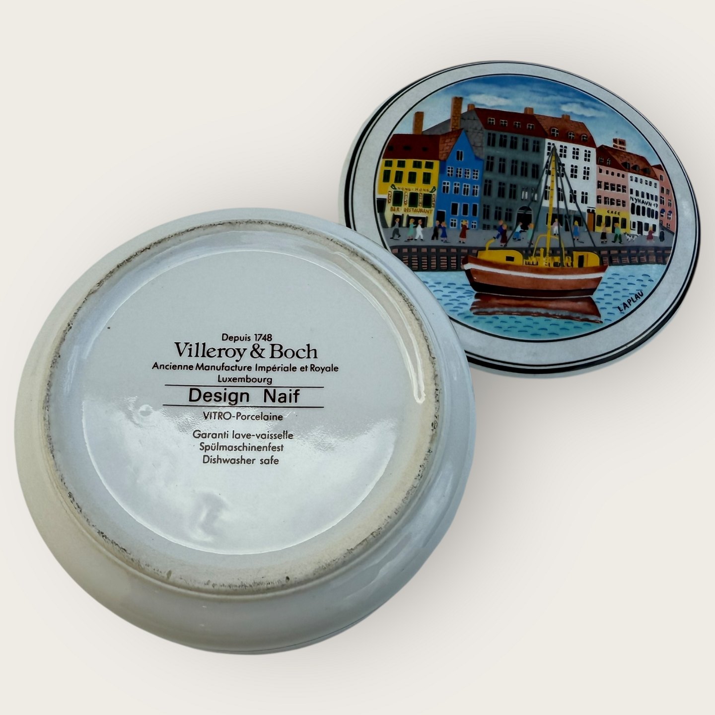 Villeroy & Boch, Design Naif, Laplau-Motiv aus Nyhavn, kleines Deckelgefäß, Durchmesser 10cm, Höhe 5cm *guter Zustand*