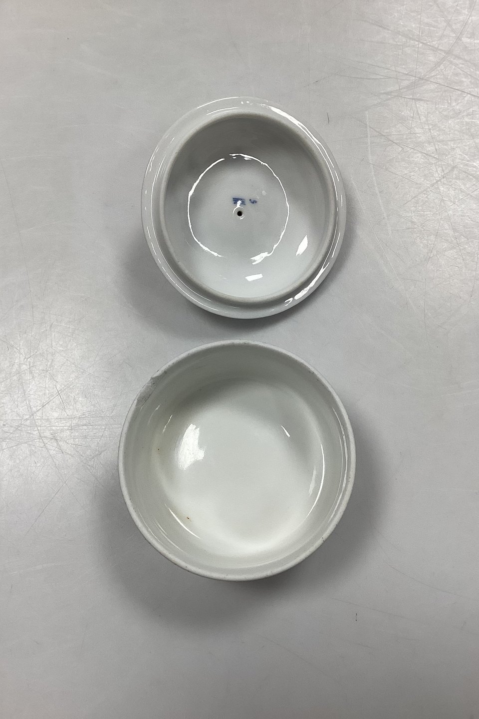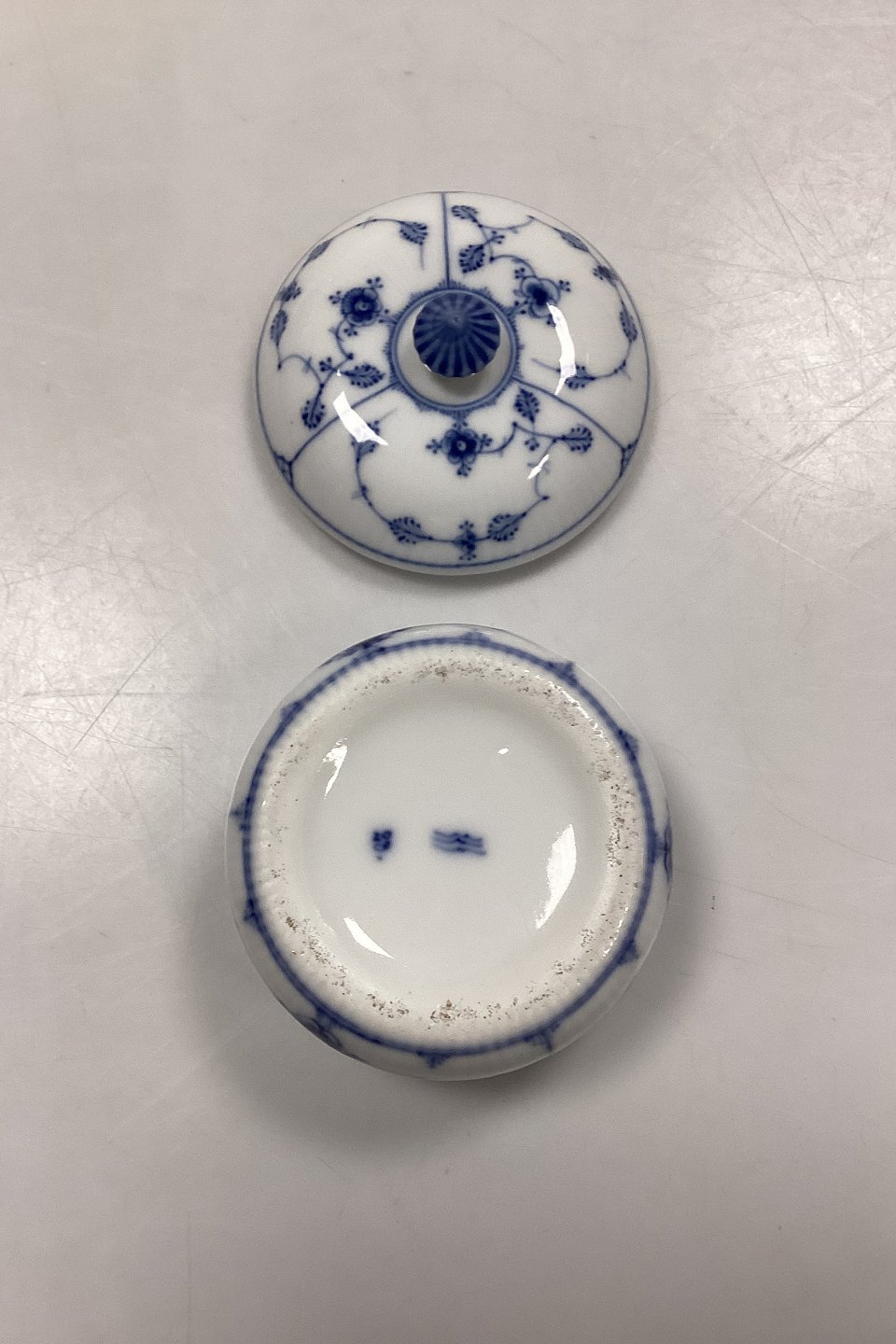 Royal Copenhagen Musselmalet Riflet Bonbonniere / Lågskål. 1. sortering med afslag på selve skålen, se fotos. Ikke nummereret.