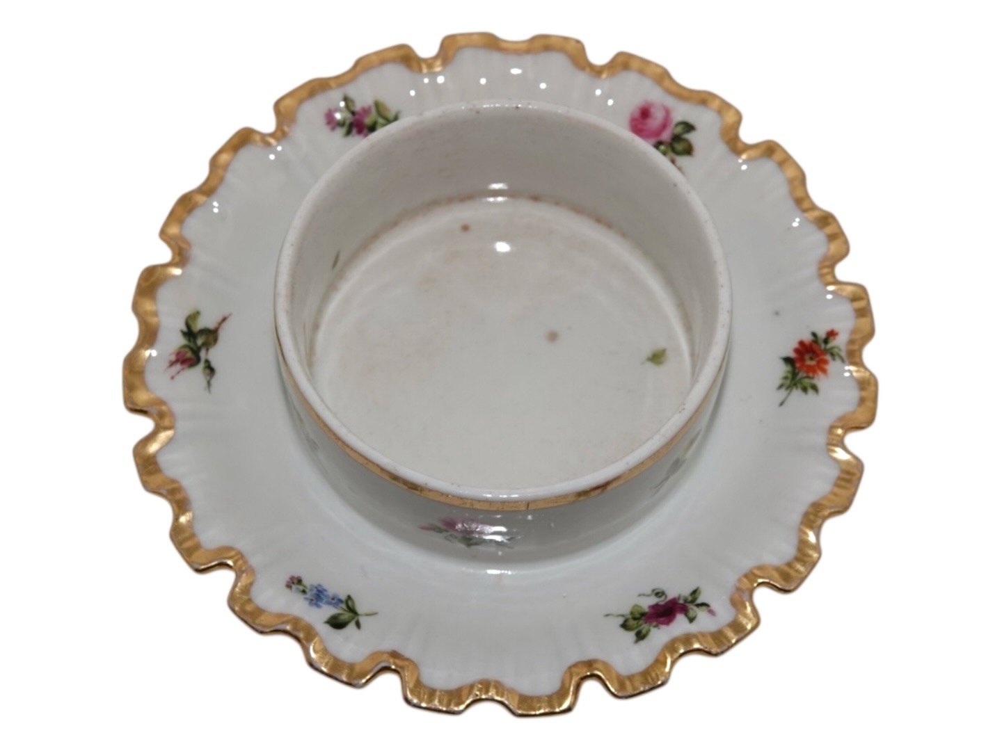 Royal Copenhagen Saksisk Blomst, sjælden smørskål på fast underfad.