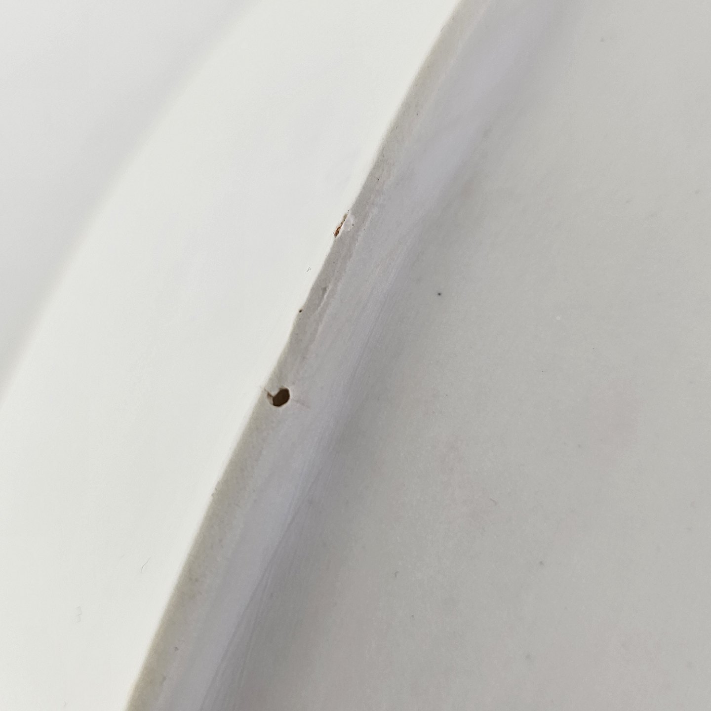 Fremstår med små misfarvninger i guldkanten og et lille hul i kanten på undersiden