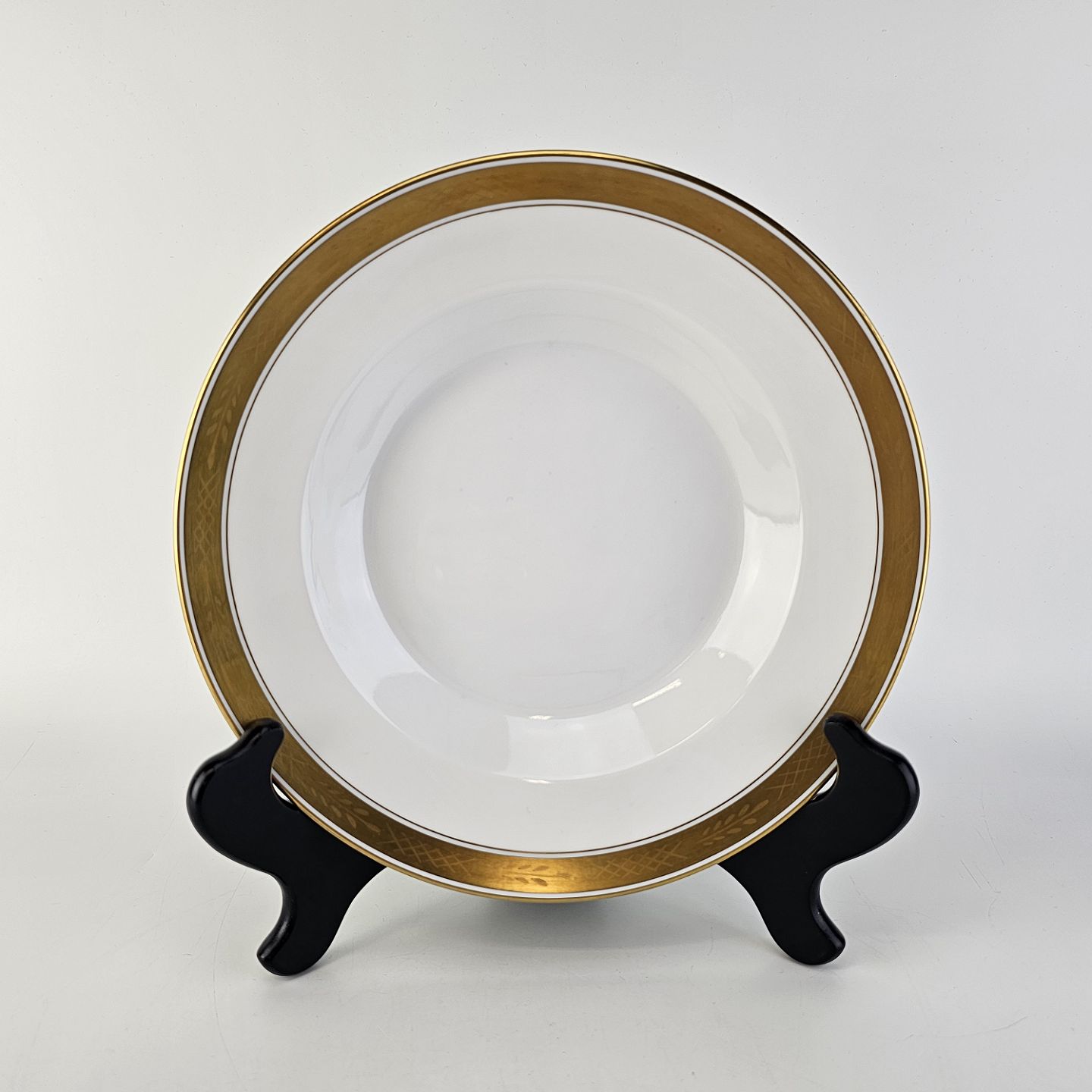 Stel nr. 607 er i hvidt porcelæn og har en guldkant med bladværk
