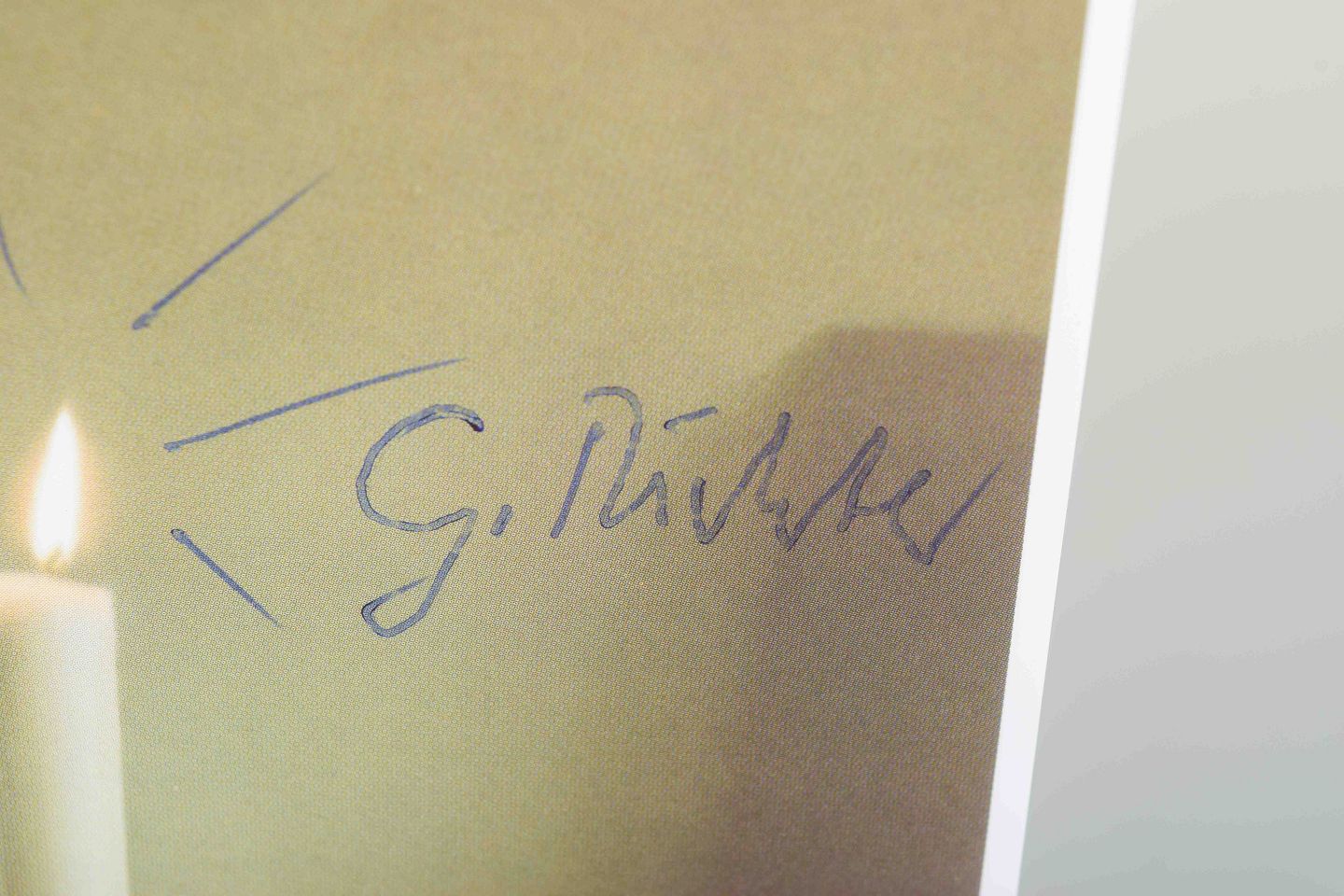 Et ikonisk motiv af Gerhard Richter med et stilleben bestående af et kranium og en lysende stearinlys. Værket fremstår i en poetisk balance mellem liv og forgængelighed, hvor lyset fungerer som symbol på nærvær og eksistens. Dette eksemplar er håndsigneret af kunstneren med dedikation.
