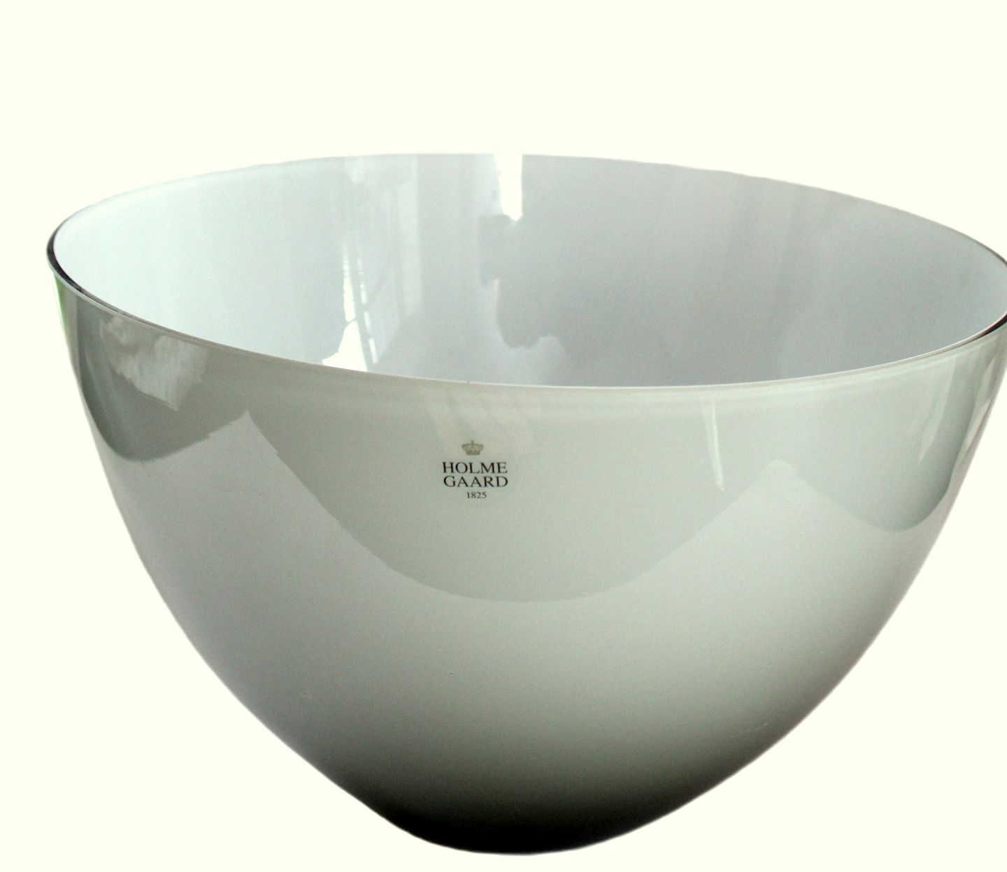 Text zugänglich auf Dänische: Holmegaard, Cocoon stor skål i udvendig lysegrå farvet glas og hvid indvendig. Designet af Peter Svarrer i 2005. Peter Svarrer starter på Holmegaard i 1997 og er kaldt for lysets mester, manden der bragte Holmegaard ind i det nye millennium efter Michael Bang og Per Lütken.