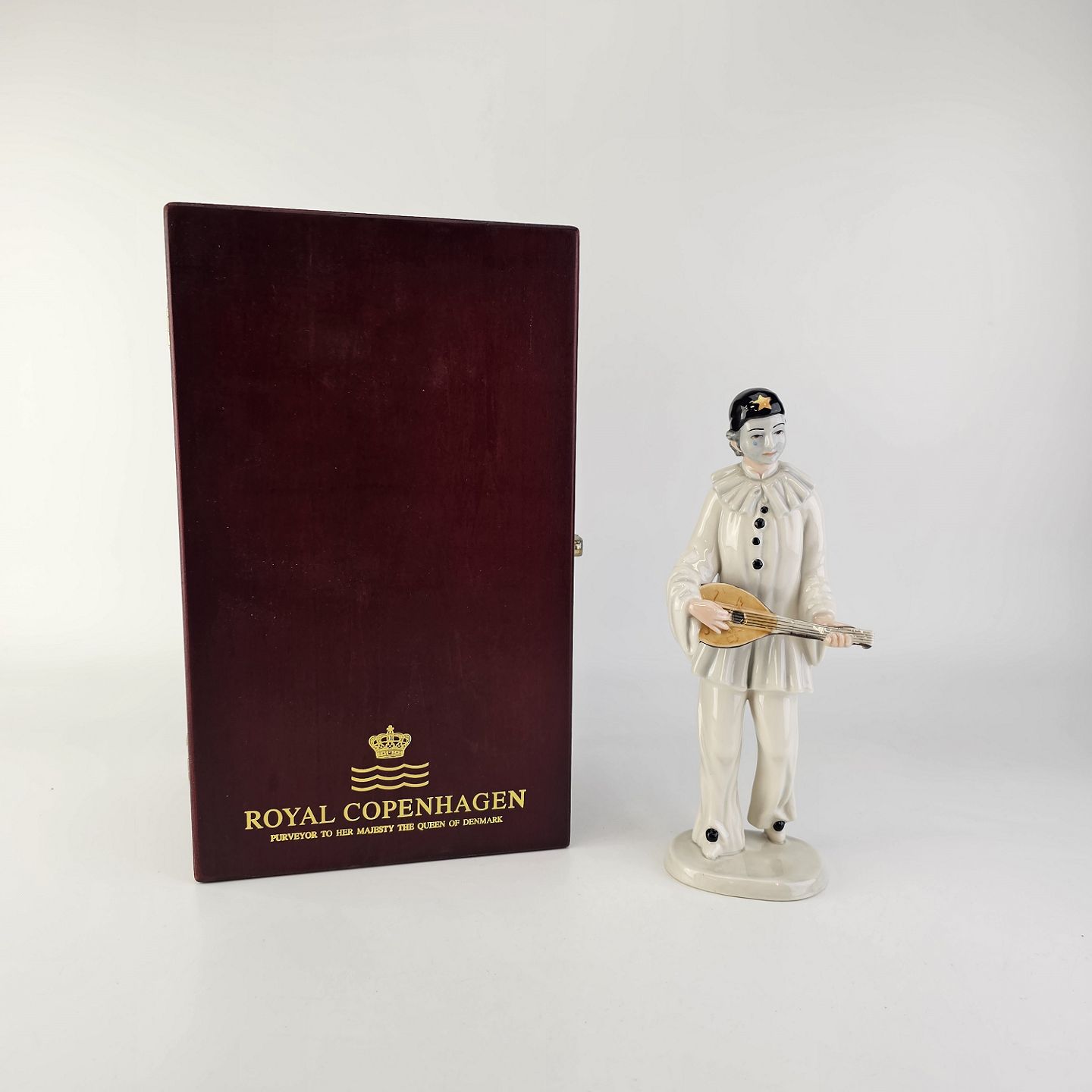 Figur i porcelæn med motiv af Pierrot fra La Commedia dell'Arte Italiana