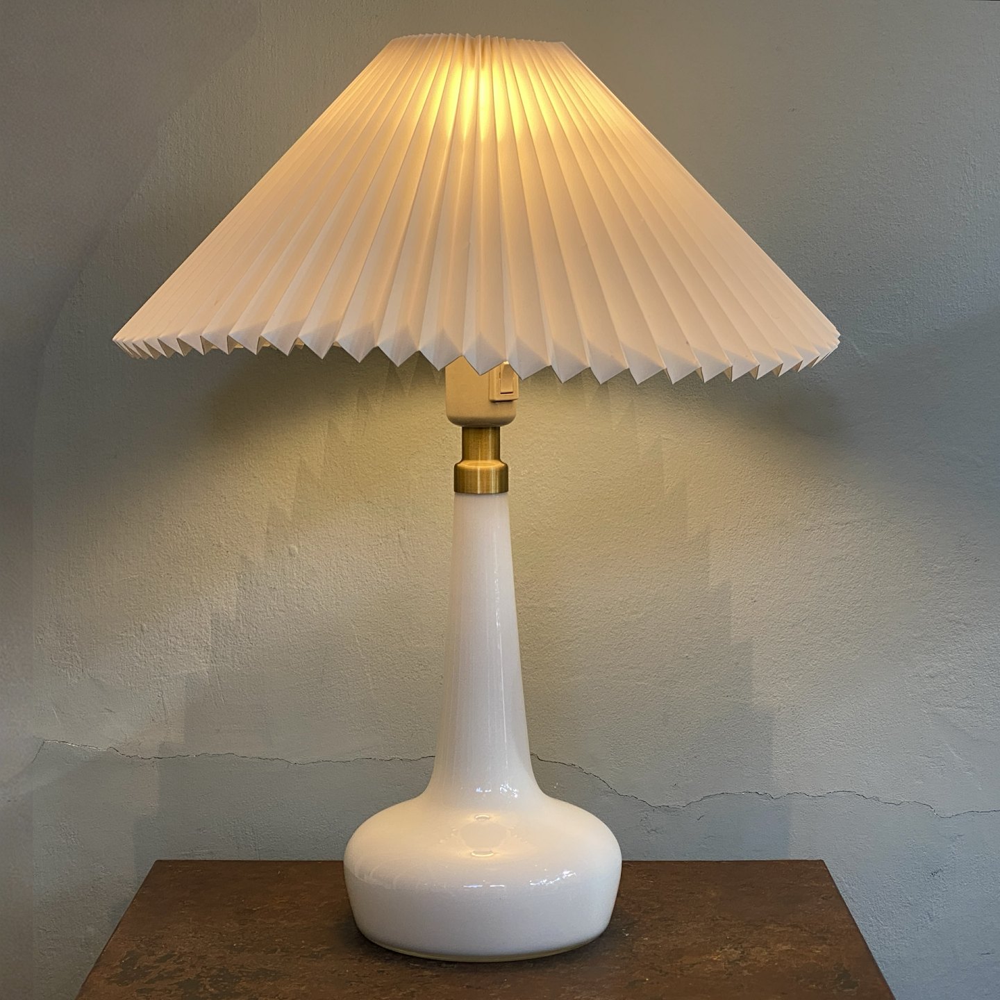 Text zugänglich auf Dänische: Le klint bordlampe model 311 med lampefod af hvid opalineglas.den viste lampe er solgt , men vi har flere dog uden skærm.