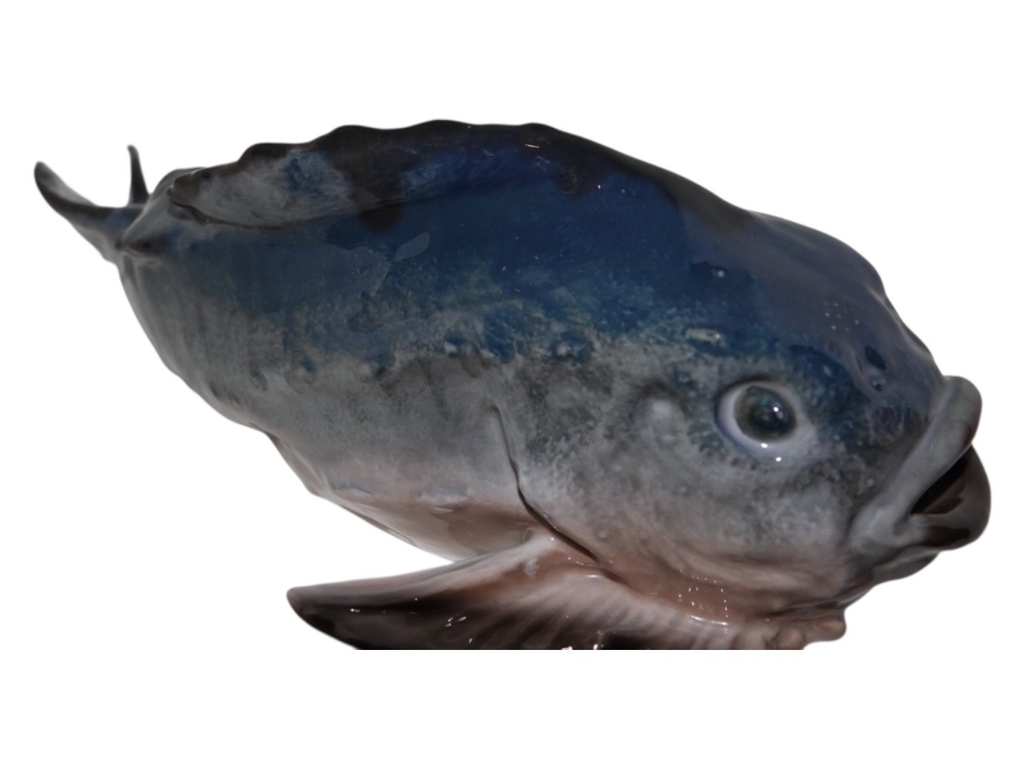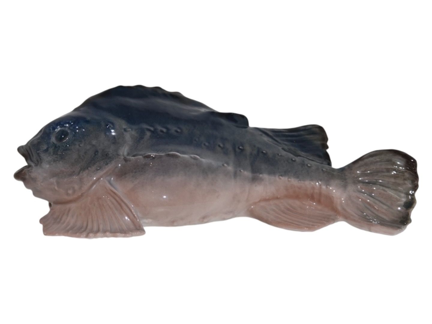 Stor og sjælden Royal Copenhagen fiskefigur, stenbider.
