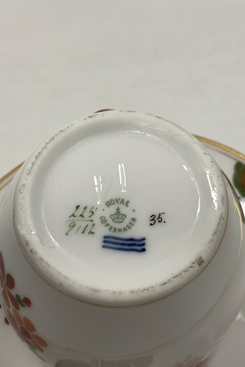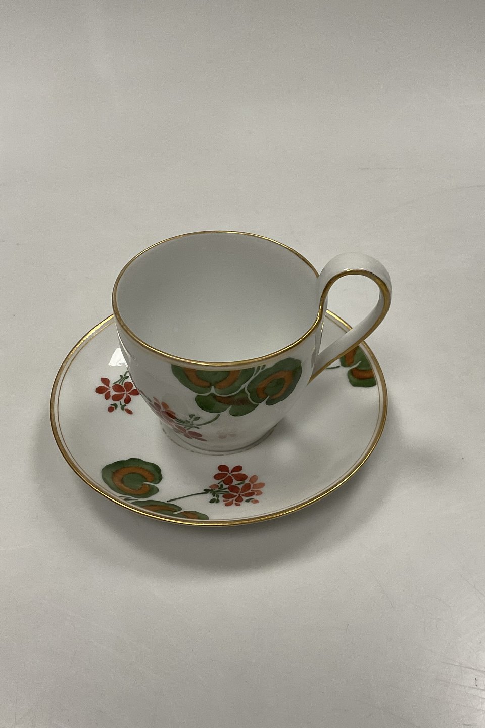 Royal Copenhagen Art Nouveau Stel No. 225 Pelargonie Stor Høj Hanks kop No. 9112