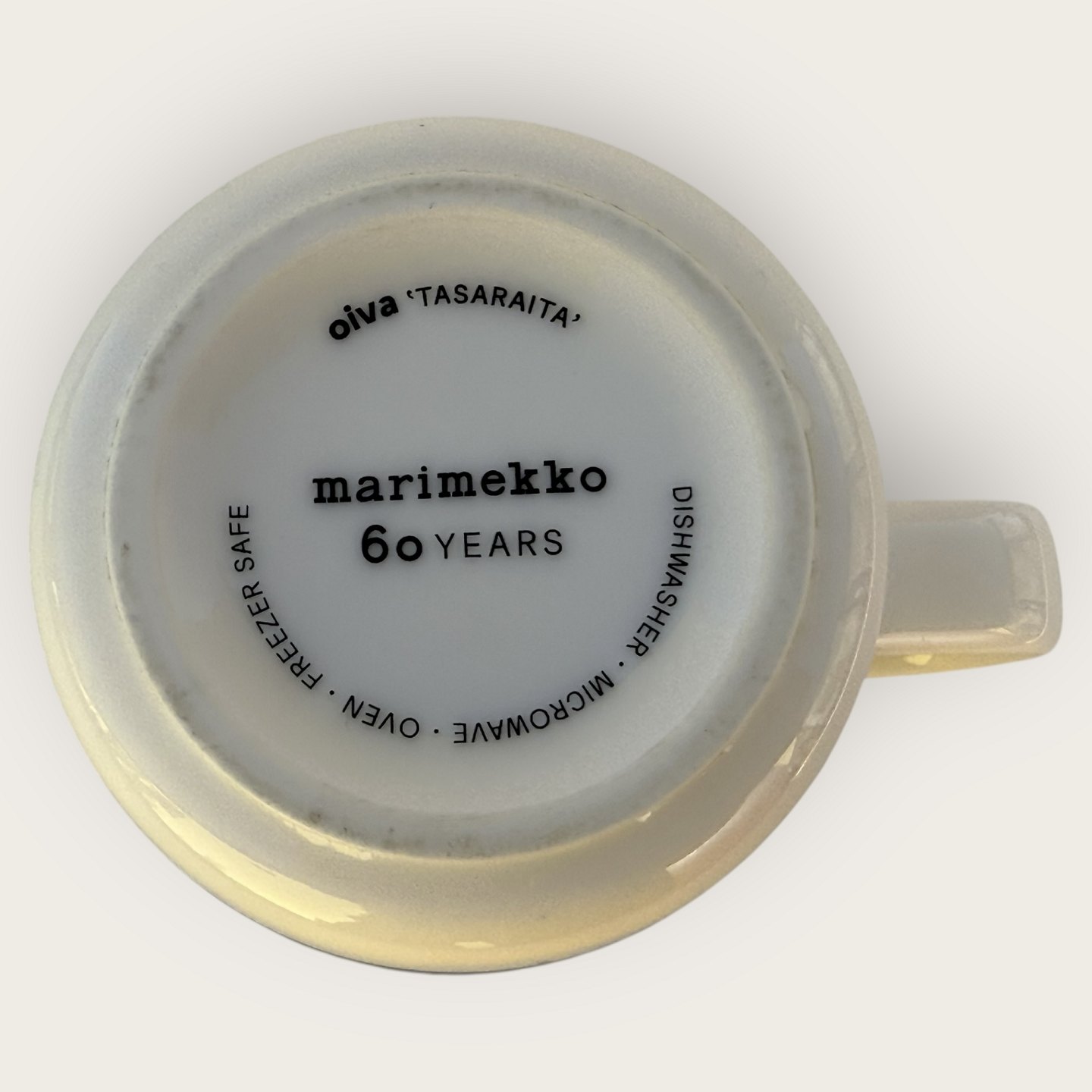 Marimekko-Tasse mit Streifen, Oiva Tasaraita, Höhe 9,5 cm, Durchmesser 8 cm *perfekter Zustand*