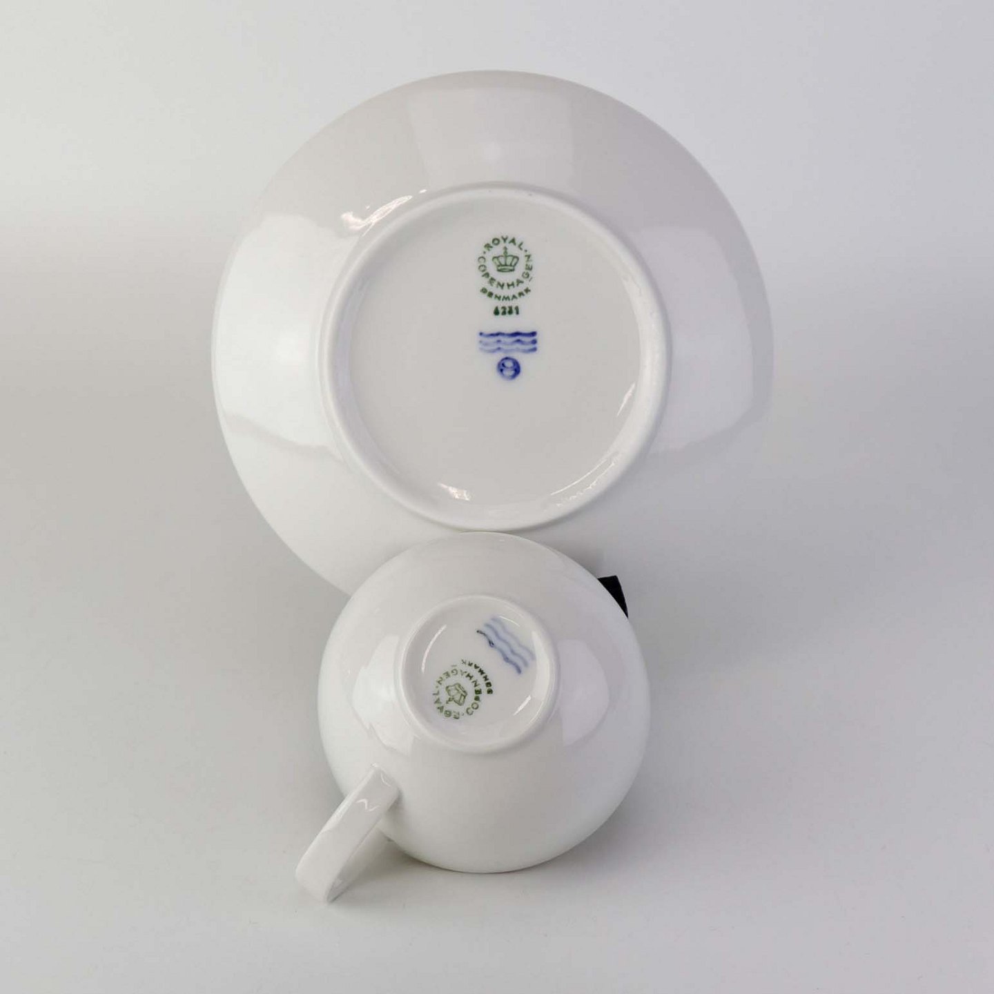 Service i glat hvidt porcelæn med dekoration i tynd rød streg.