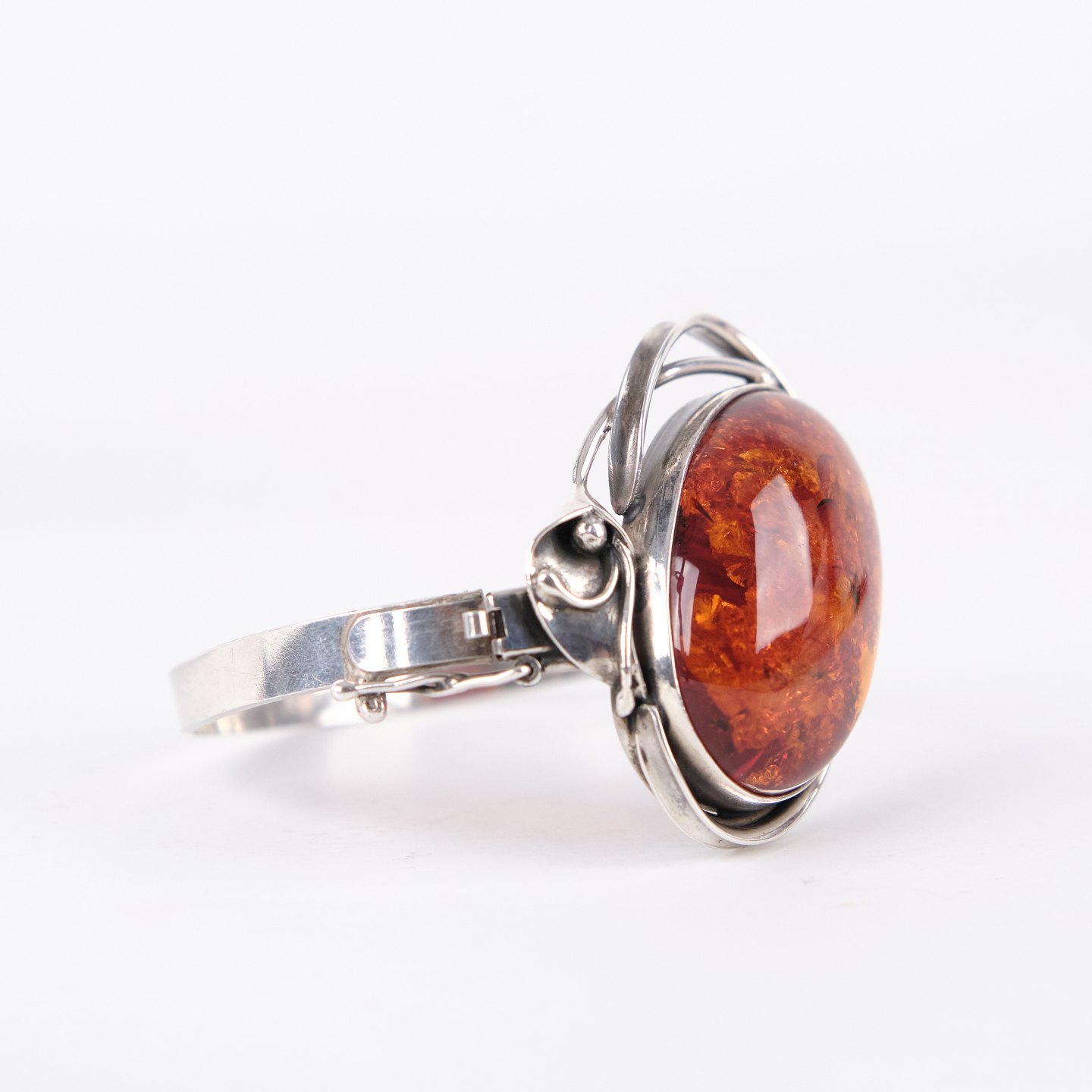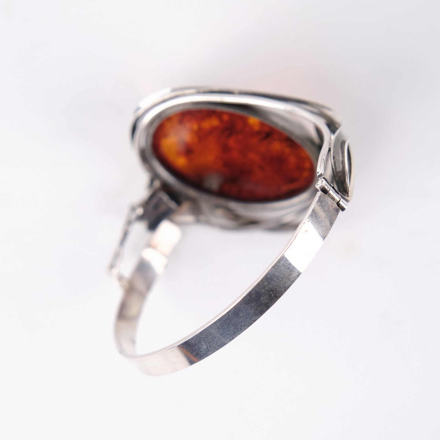 Armreif aus Silber mit Bernstein und Sicherheitsverschluss. Einzigartiges Schmuckdesign mit Bernstein.