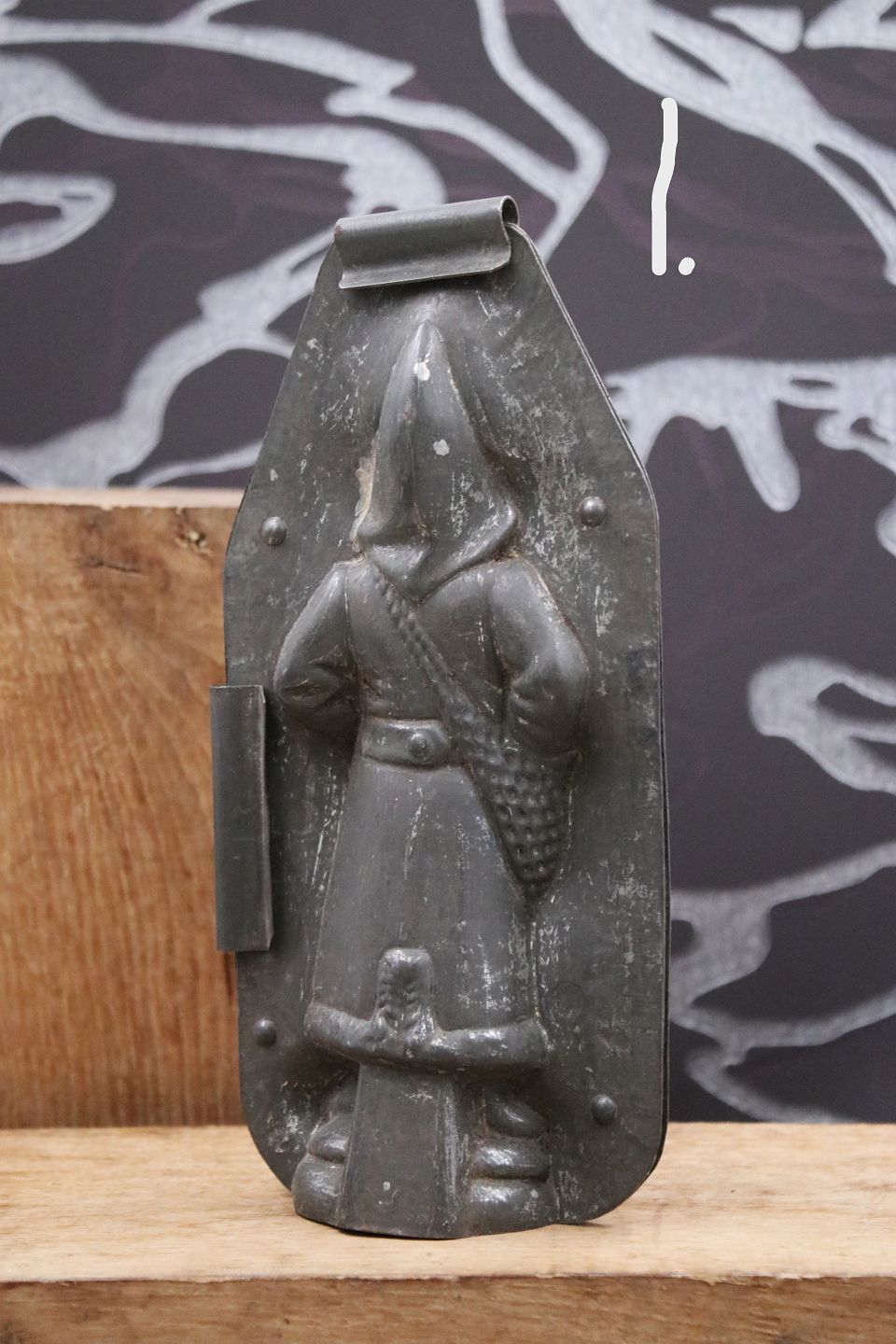 Dekorative , gamle chokoladeforme af julemænd lavet i metal med en rigtig fin patina.