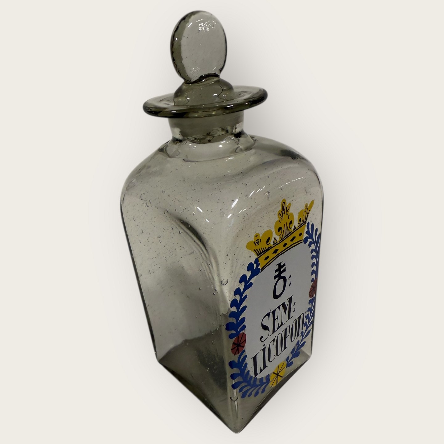 Holmegaard Apothekerflasche von 1977, Sem Licopod, Maße: 17,5 x 6,5 x 6,5 cm, die Flaschen sind mundgeblasene Kopien von originalen alten Apothekerflaschen, signiert Hg.