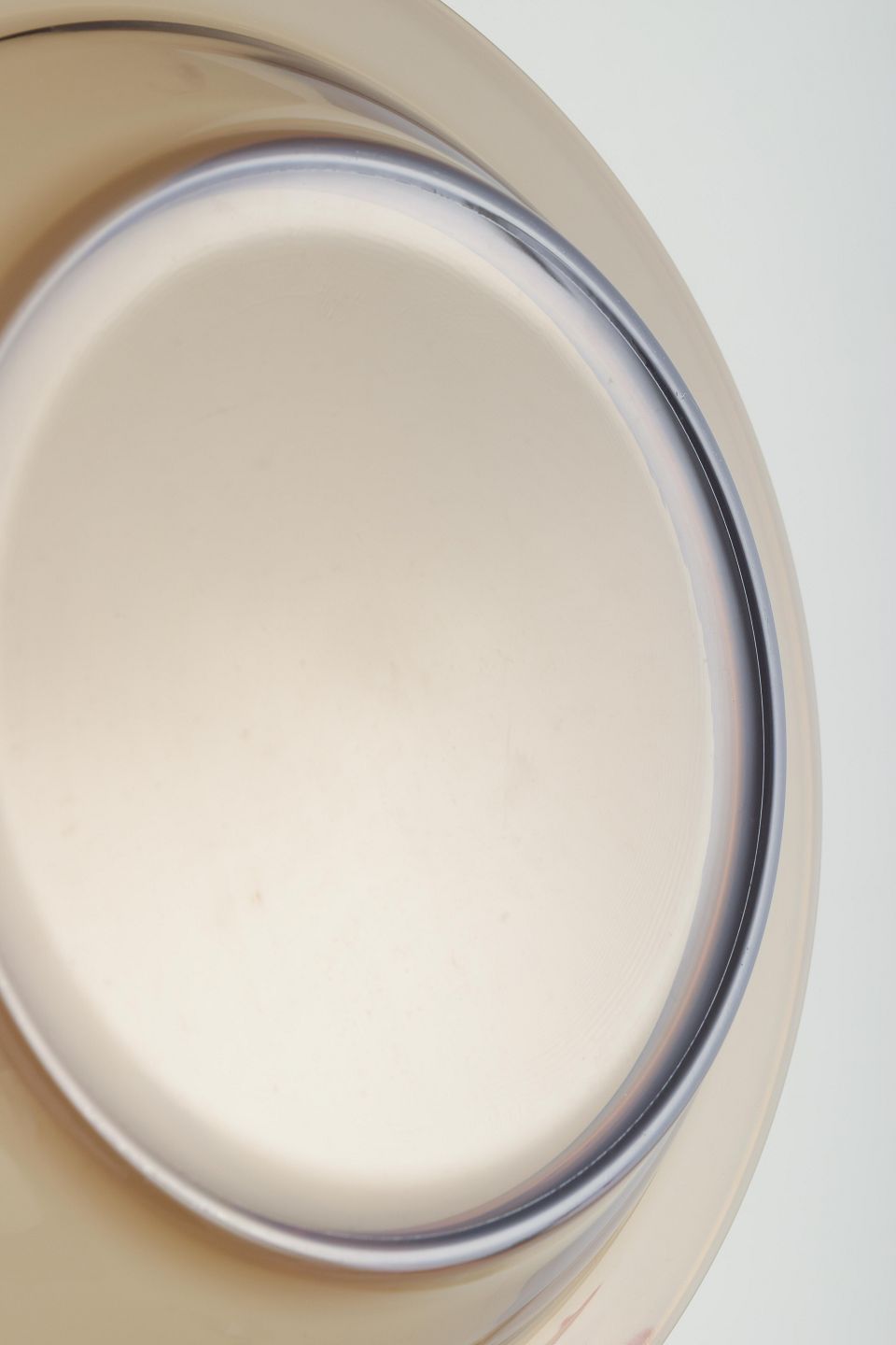 Dekorativ skål i røgfarvet glas med rund form og bred kant. Et klassisk eksempel på fransk husholdningsdesign fra Arcoroc, kendt for sin robuste og tidløse glasproduktion til både professionel og privat brug.