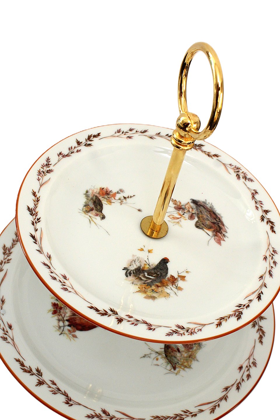Jagtstellet designet af Mads Stage for Imerco. Tallerken etagere, Tallerken opsats. Yderst sjælden. Der er 3 forskellige vildtfugle på hver tallerken, som svarer til de 6 vildtfuglemotiver på stellet.