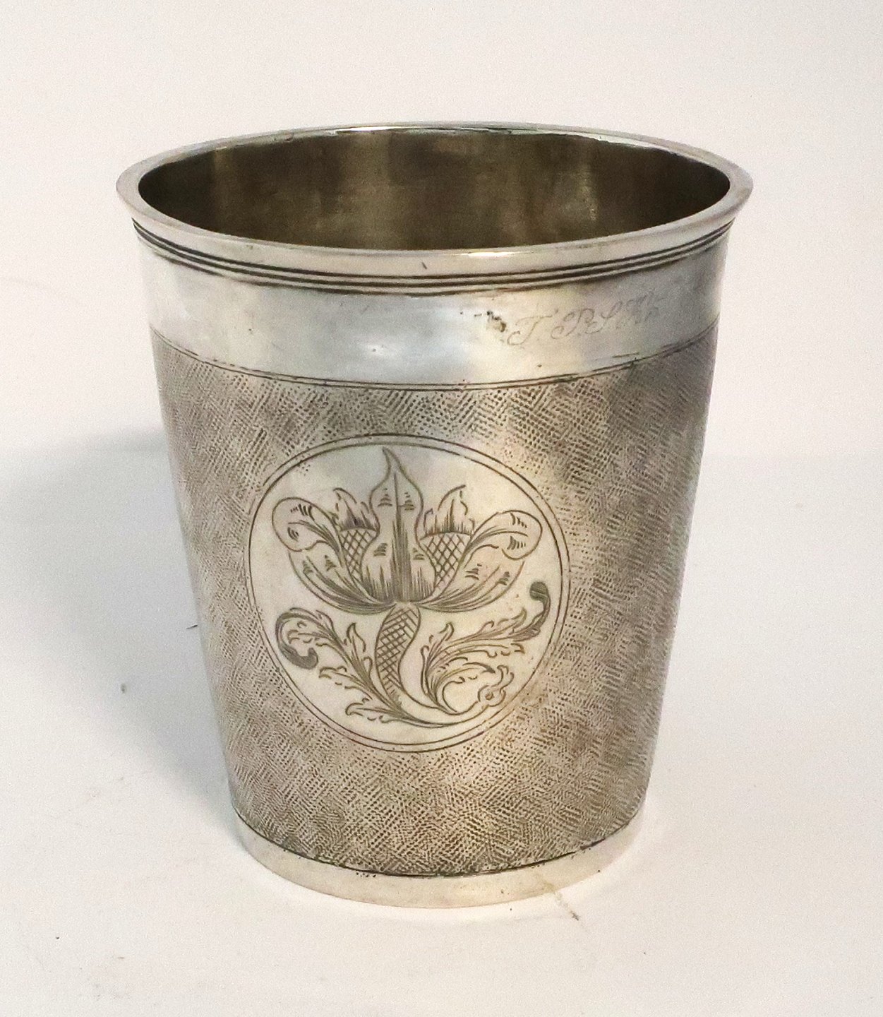 Christian Frederik Nyested, Horsens. Silberner Becher. Höhe 9,6 cm. Durchmesser 8,7 cm.