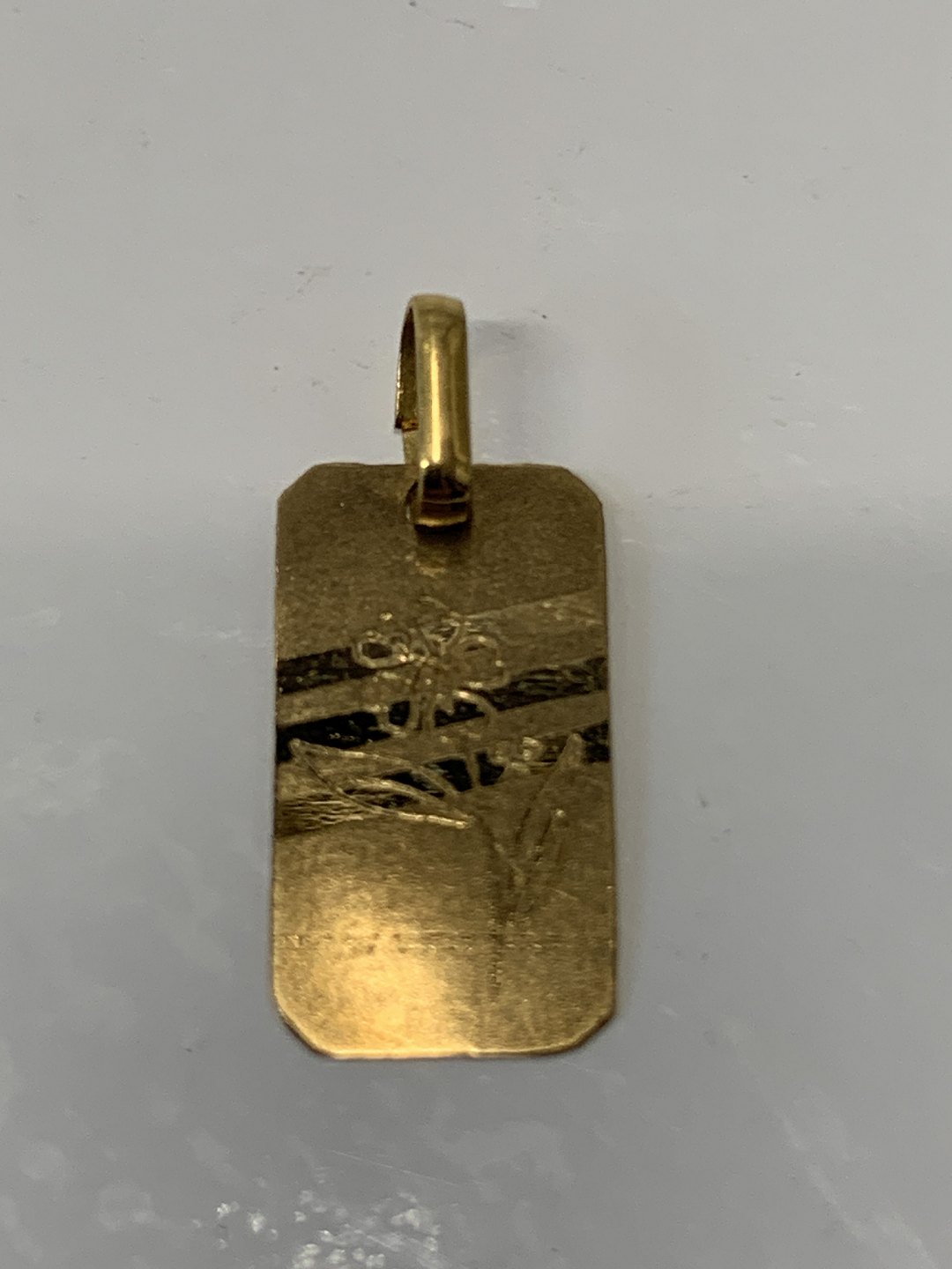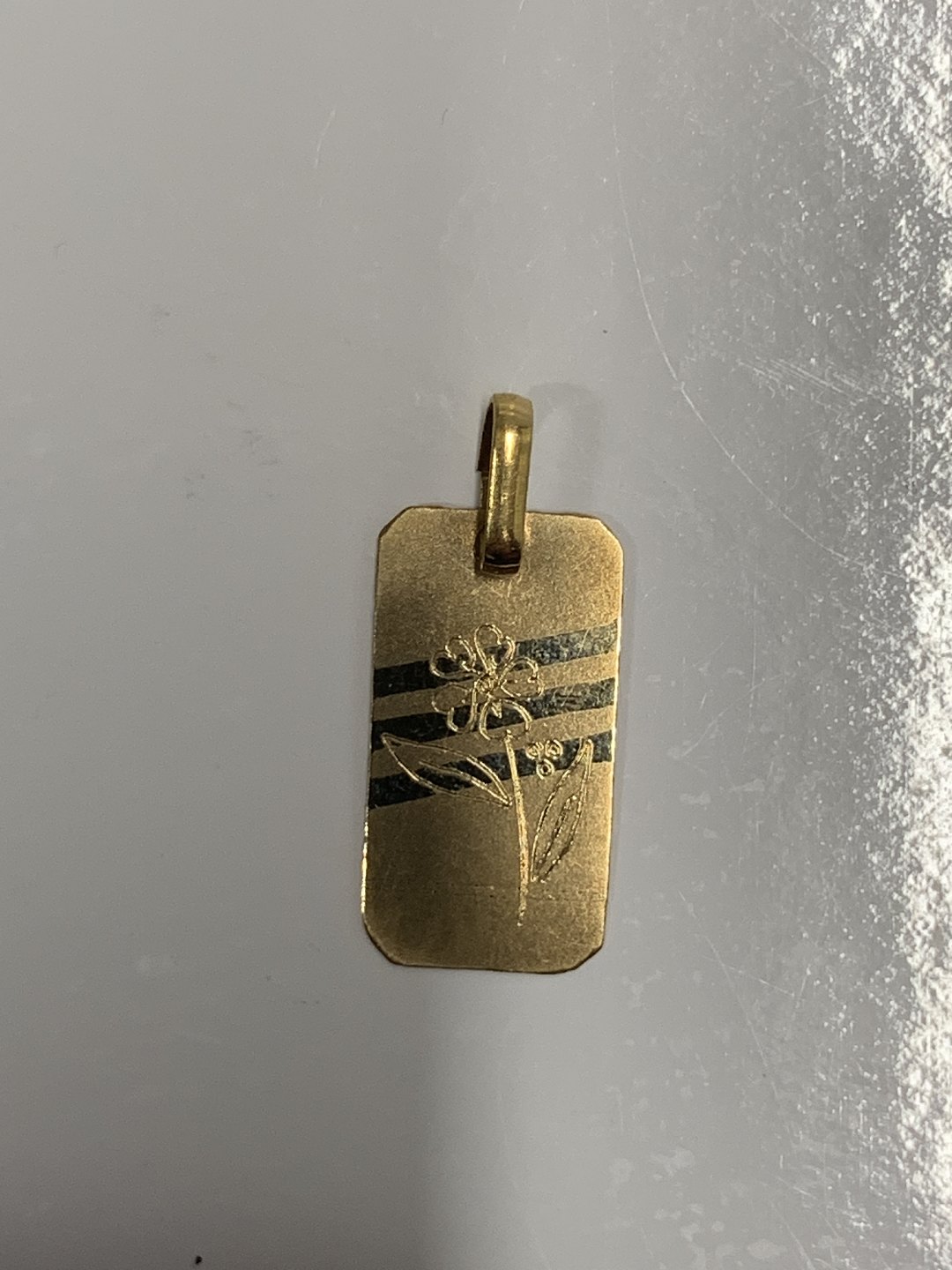 Id Plade Scrouples med blomst Charms / Vedhæng i 18 karat