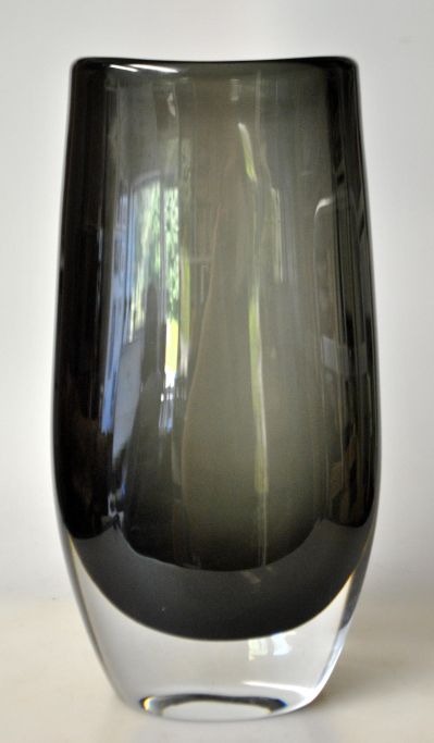 Orrefors Glasvase PU 3918, 20. Jahrhundert. Schweden. Entwurf: Sven Palmqvist (1906 - 1984). Rauchglas. Unterzeichnet. H: 25 cm. B: 12 cm.