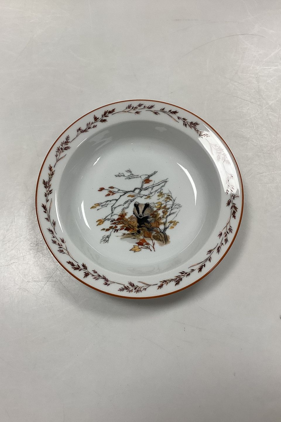 Mads Stage Jagtstellet Dyb Tallerken. Producent: Seltmann Weiden. Motiv: Grævling.