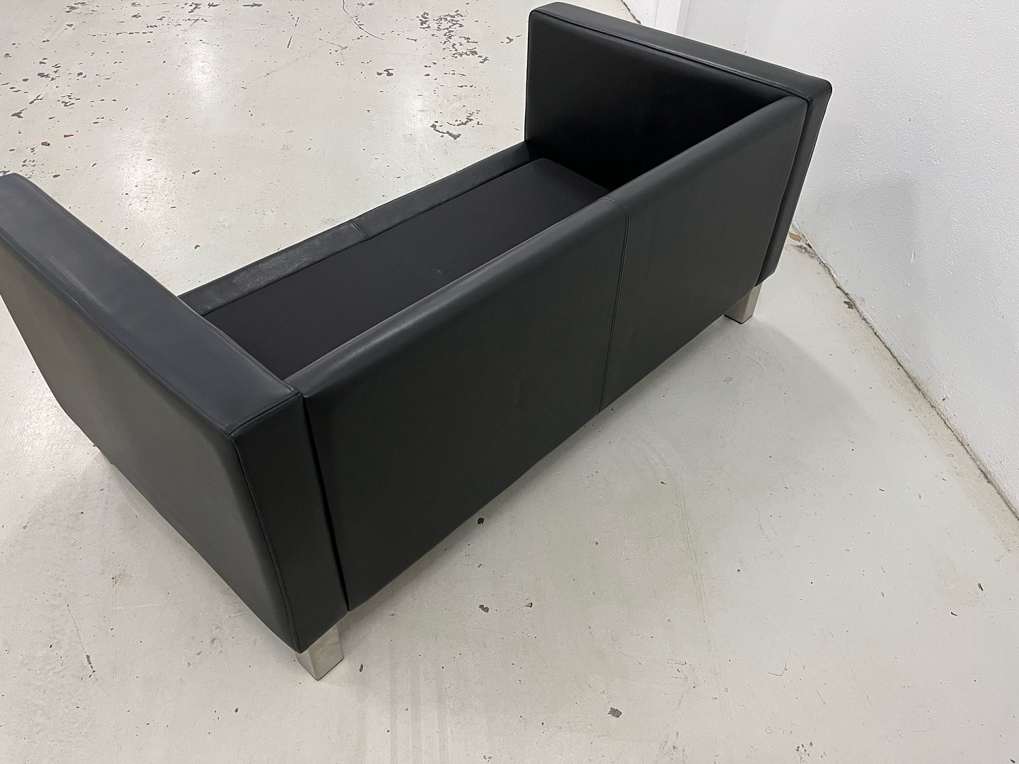 Mogens Hansen MH321 2-Sitzer-Sofa in schwarzem Prestige-Leder und mit Beinen aus gebürstetem Stahl. Neupreis 35.403,-