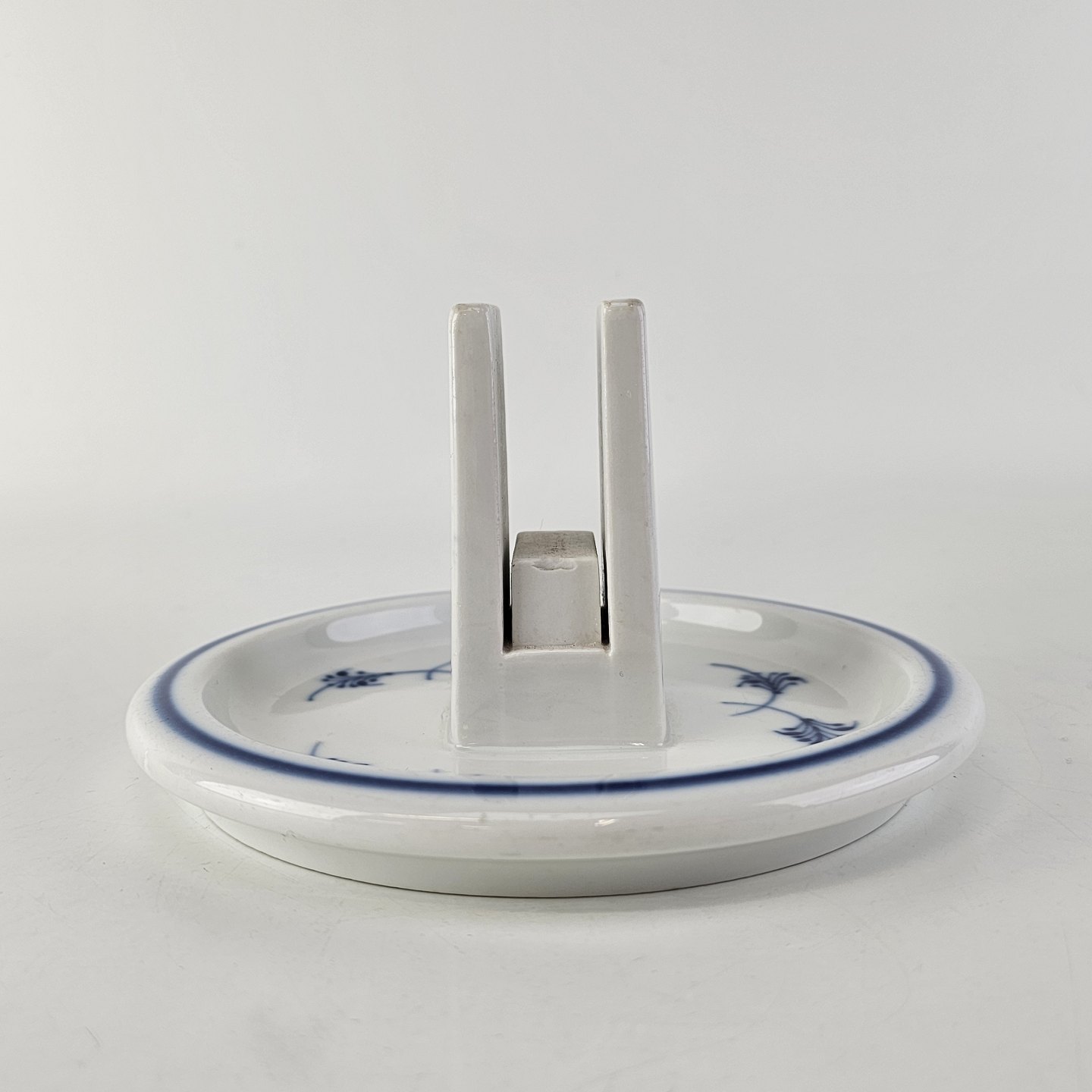 Tandstikkeholder i hotelporcelæn med motiv fra restaurant Kilden i Aalborg fra stellet Blåmalet