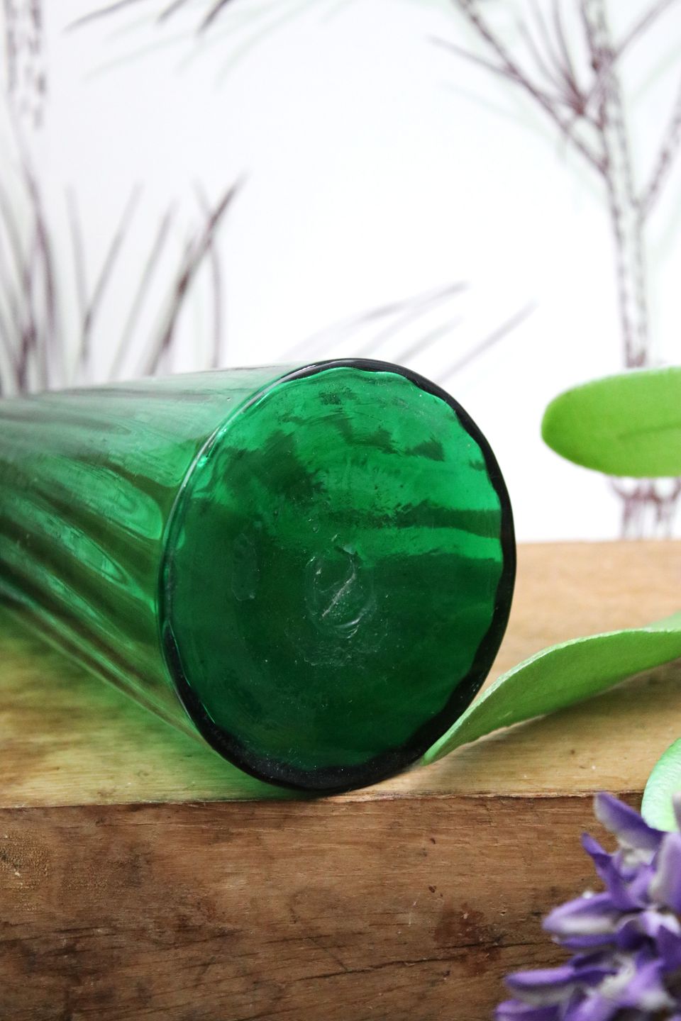 Antikt grønt hyacintglas i mundblæst glas fra Holmegaard glasværk.