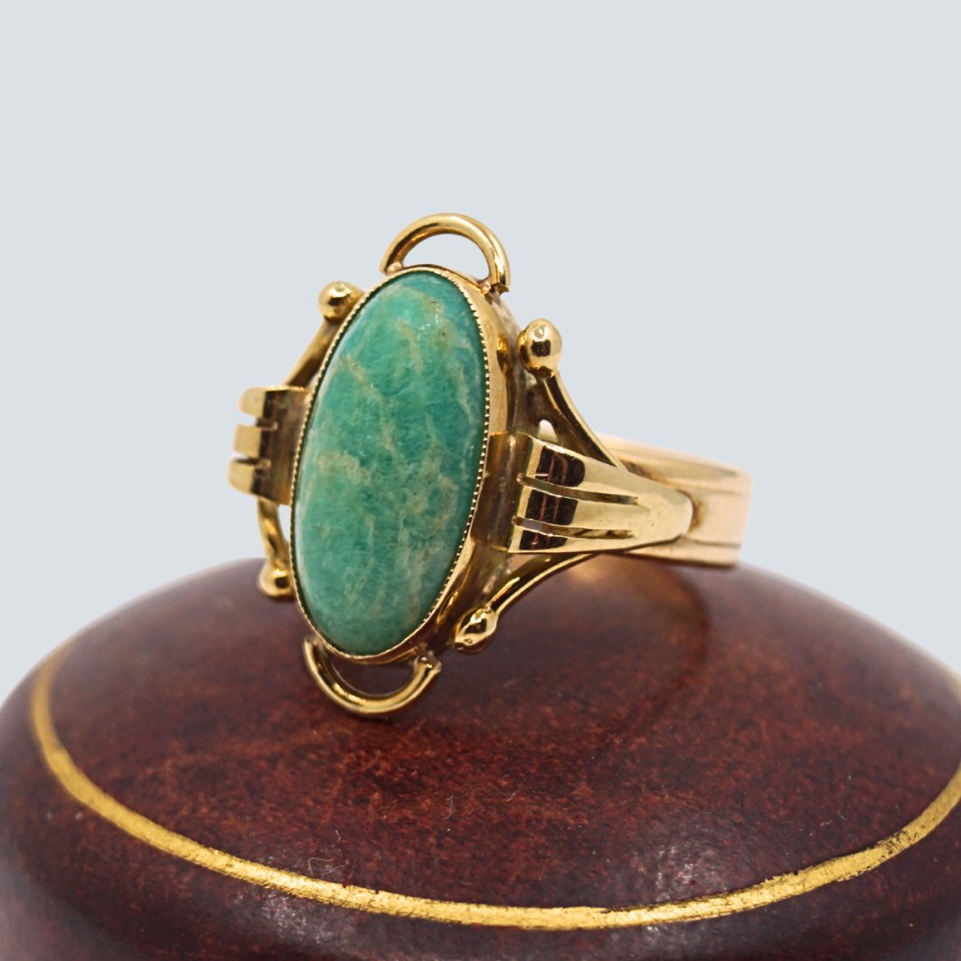 Text zugänglich auf Dänische: Bræmer-Jensen; Ring i 14 kt. guld med turkis sten
