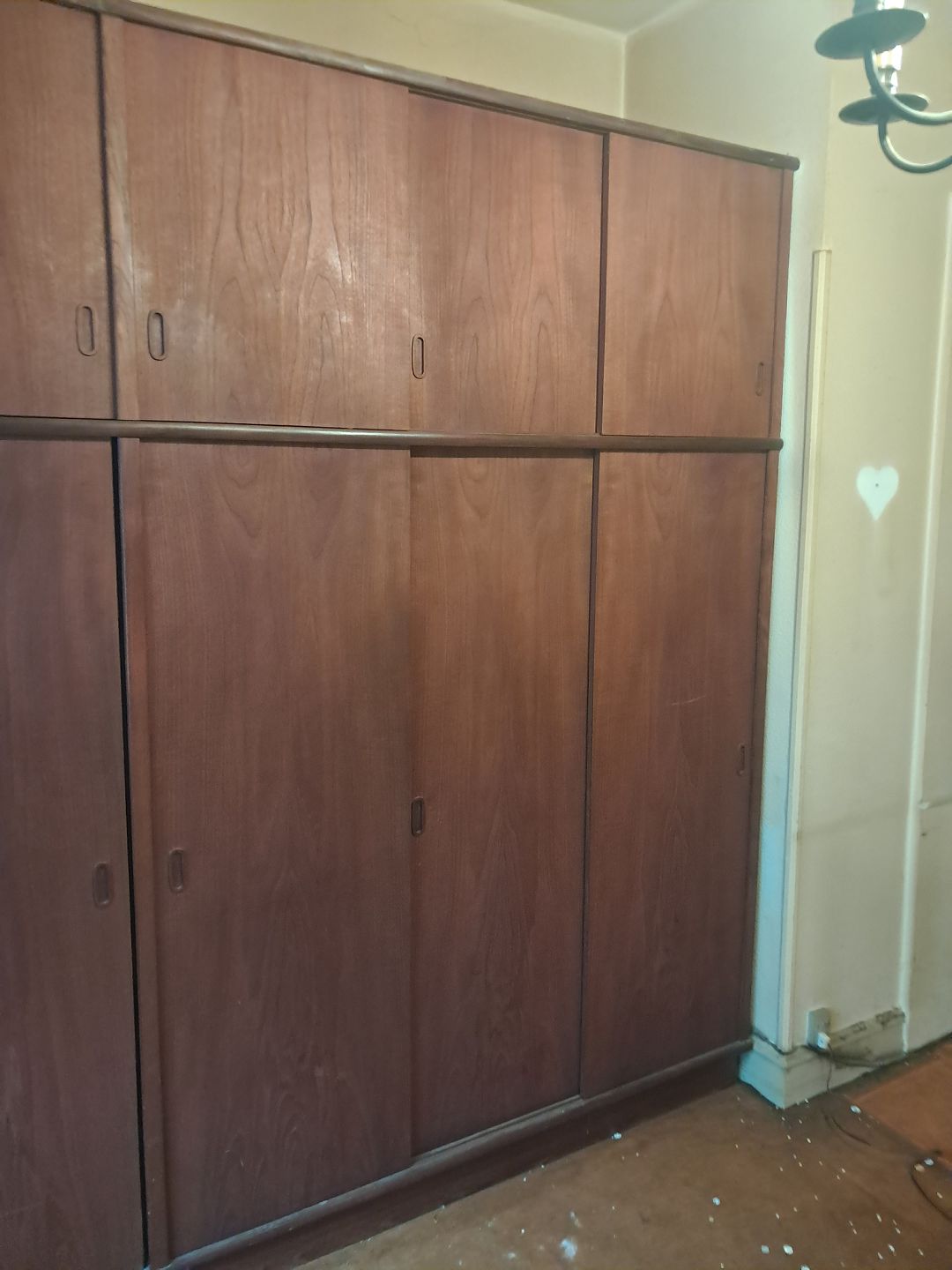 Text zugänglich auf Dänische: 6 Dørs-klædeskab i fineret teaktræ, fra 1960erne.