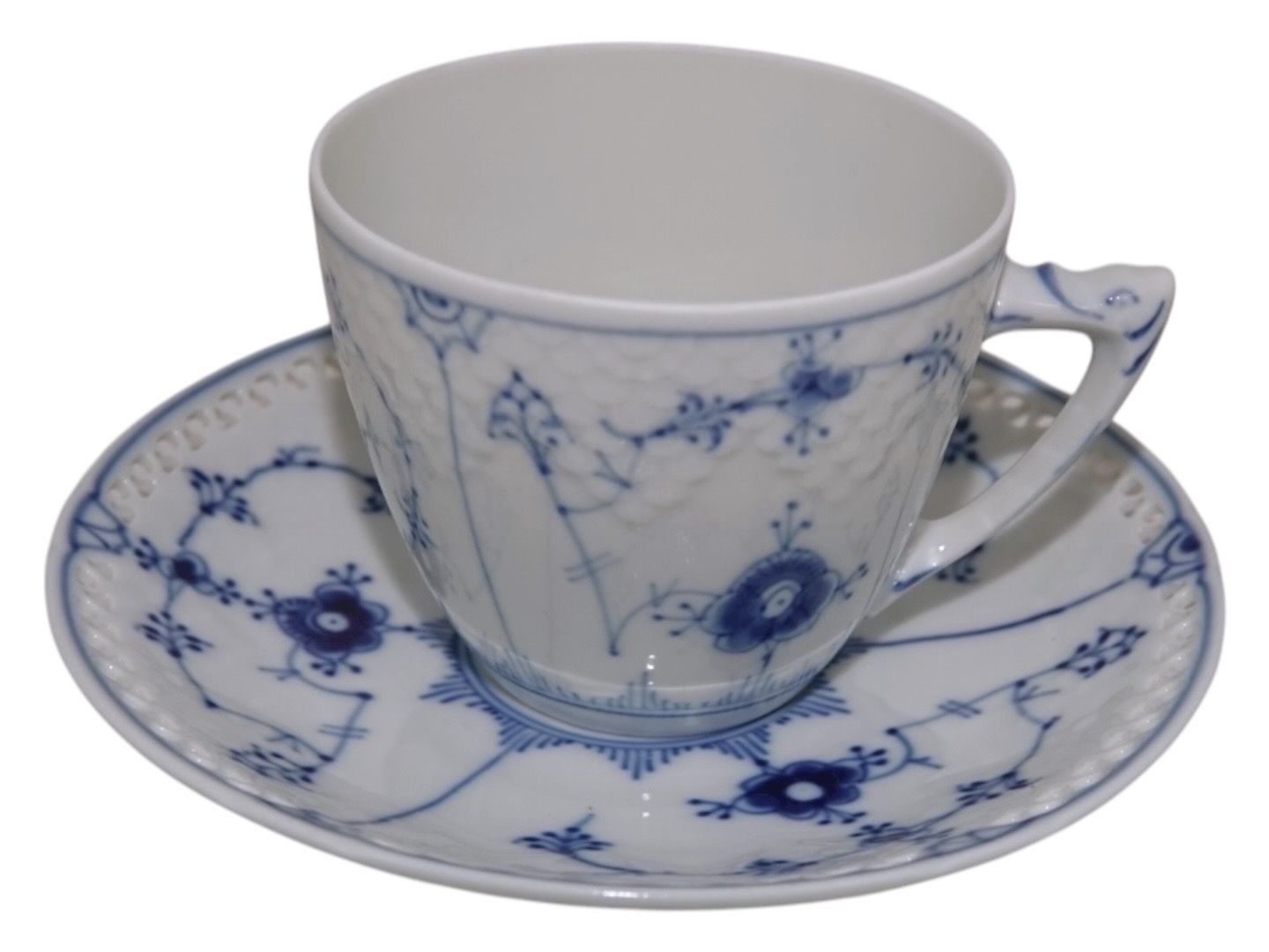 Bing & Grøndahl Blåmalet (Musselmalet), kaffekop med blondekant på underkoppen.
