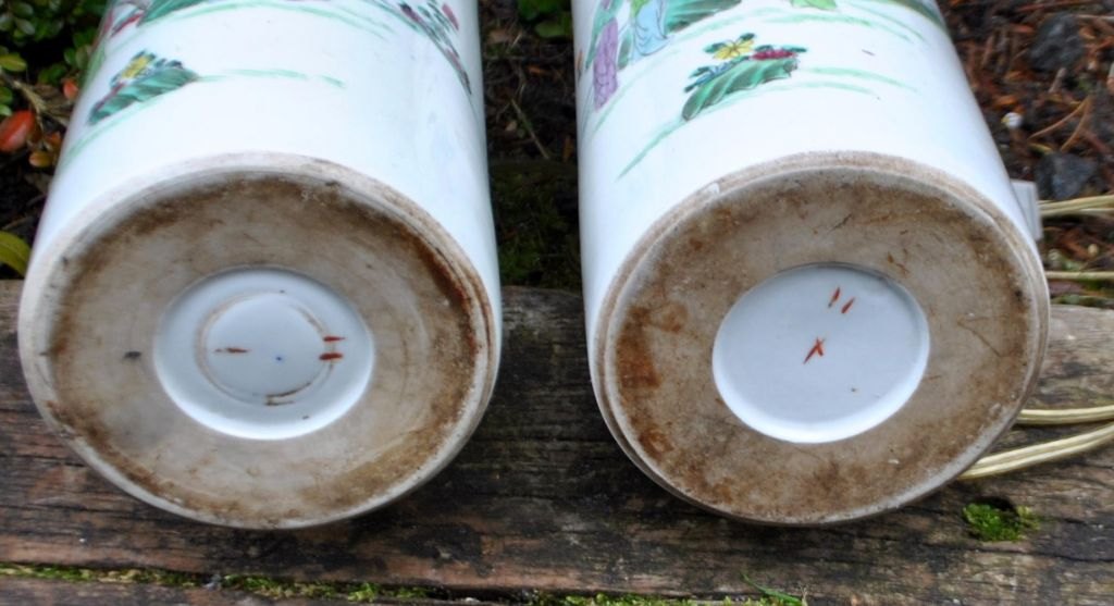 Paar chinesische Hutständer aus Porzellan, 19. Jahrhundert. Umgebaut zu Tischlampen.