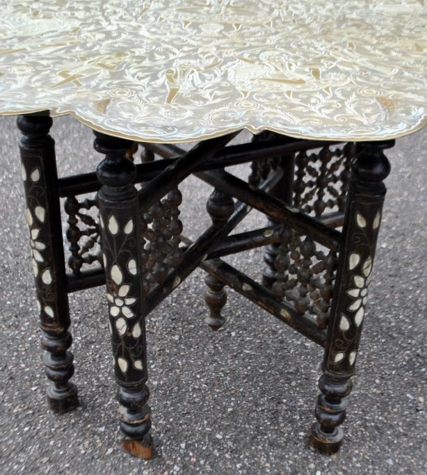 Arabischer Rauchertisch mit Messingplatte aus Indien, 19./20. Jahrhundert.