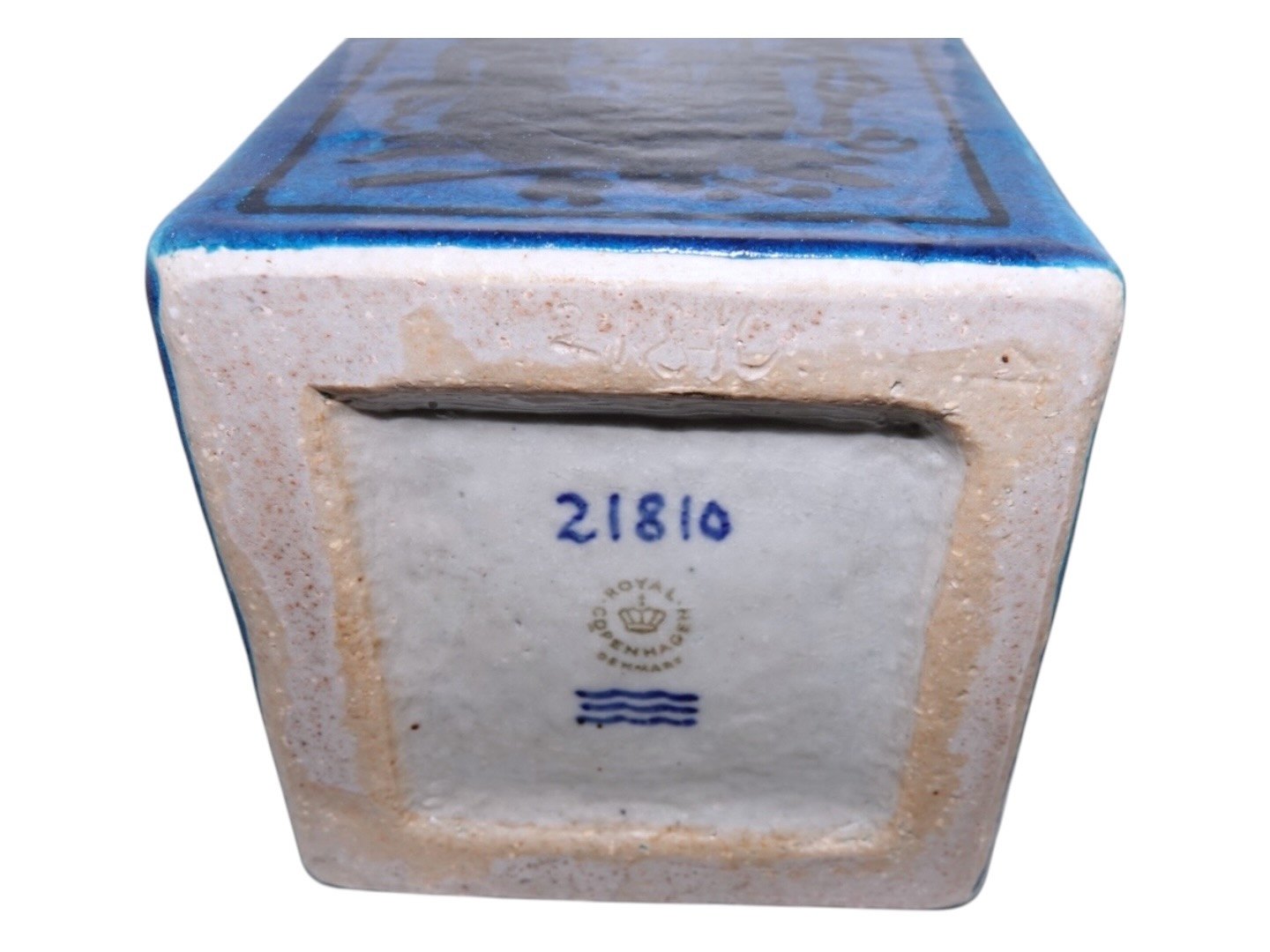Royal Copenhagen blå vase dekoreret med damer designet af Johannes Hedegaard.