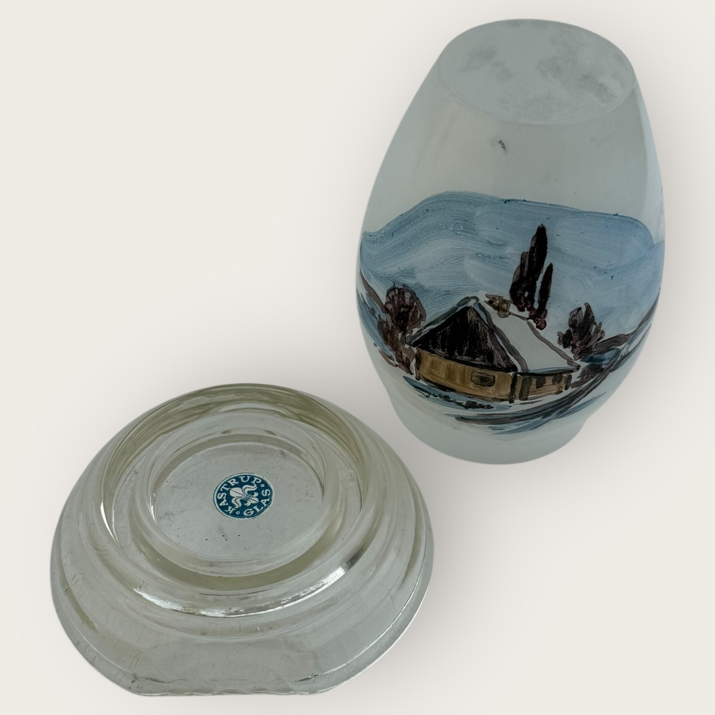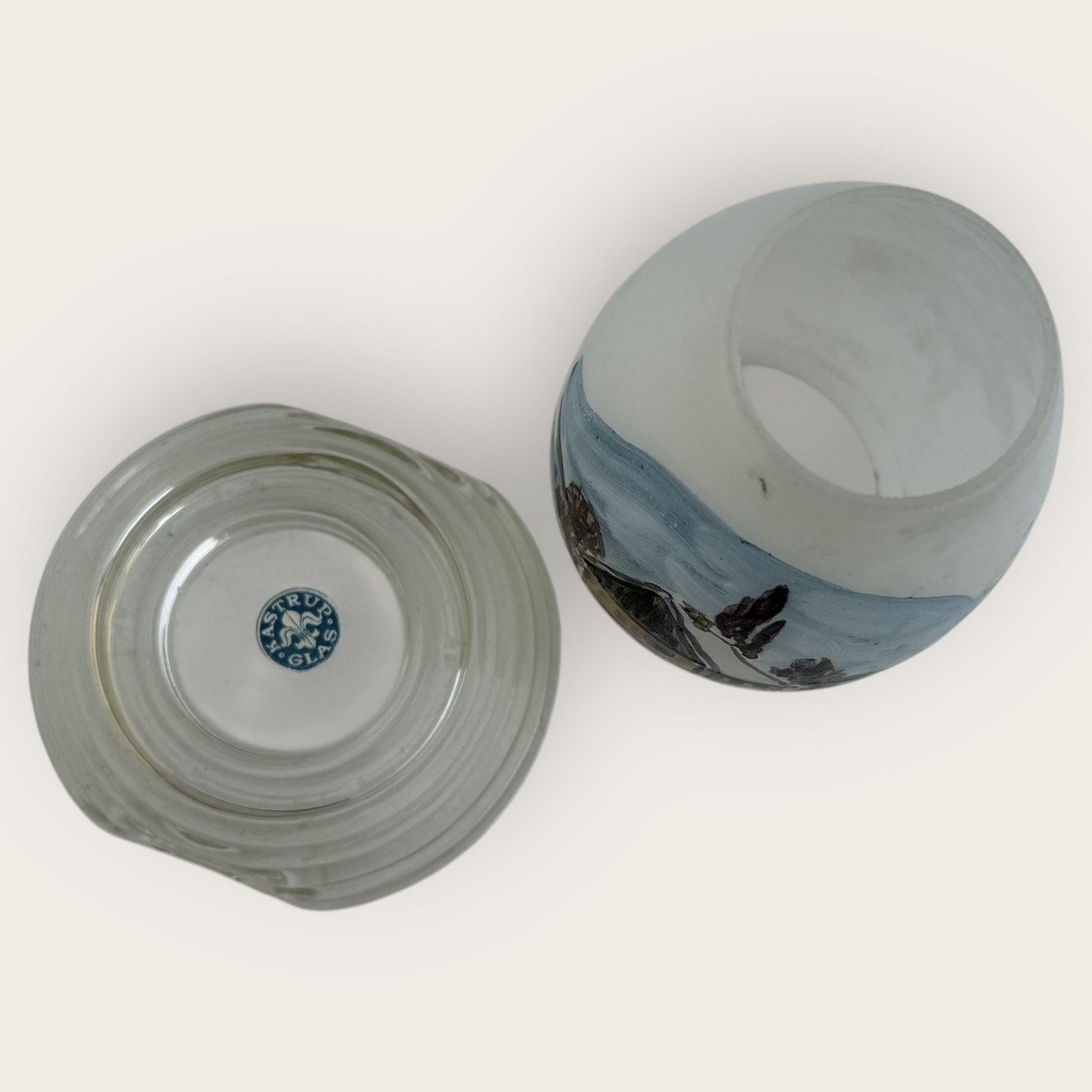 Kastrup Glasmanufaktur, gemütliche Lampe mit handbemalter Dekoration für Teelichter, ca. 9 cm hoch *Einige dunkle Flecken im oberen Glas, ansonsten guter Zustand *