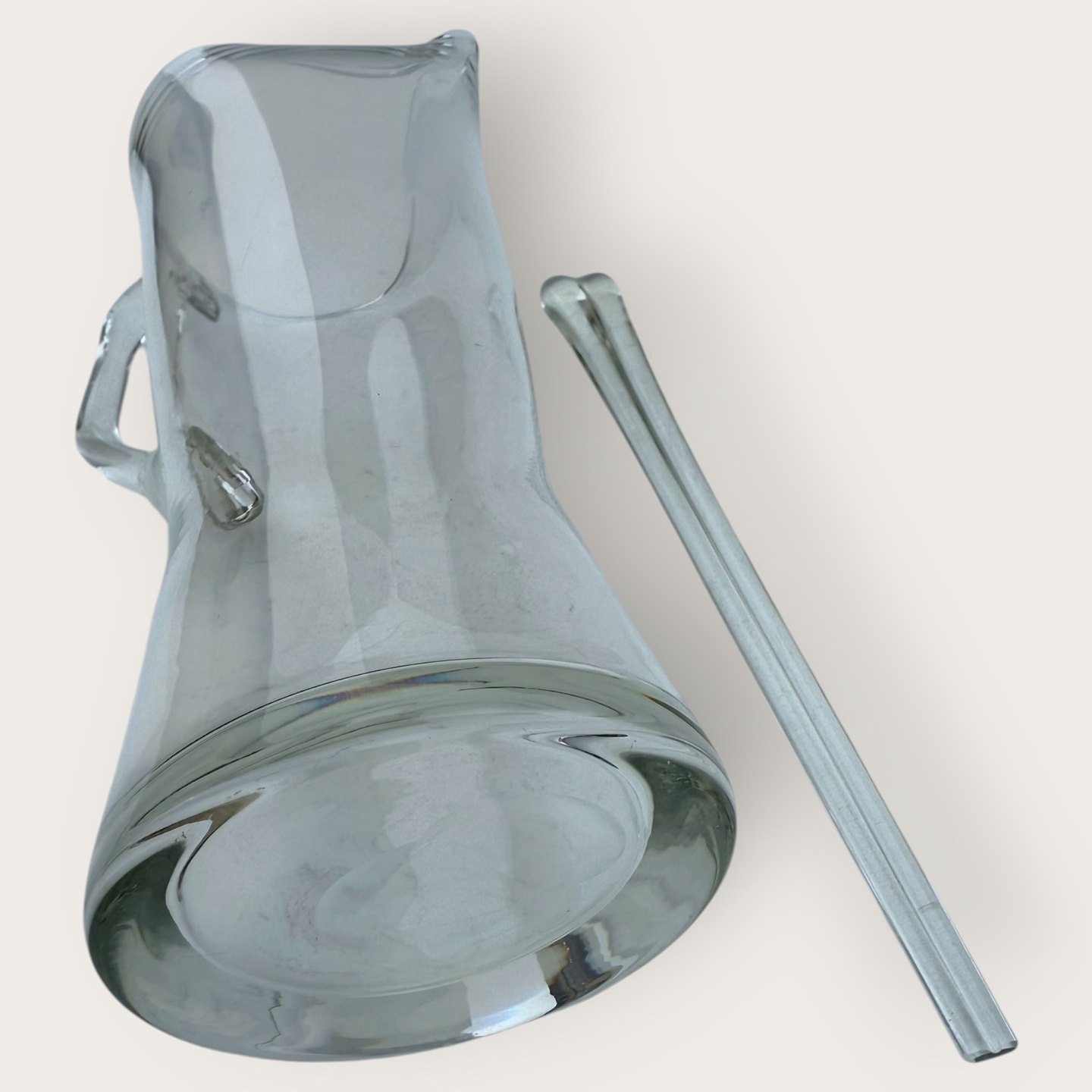 Glaskrug mit Rührstab, Cocktailkrug, Höhe 28 cm, Breite am Griff 16 cm * guter Zustand *
