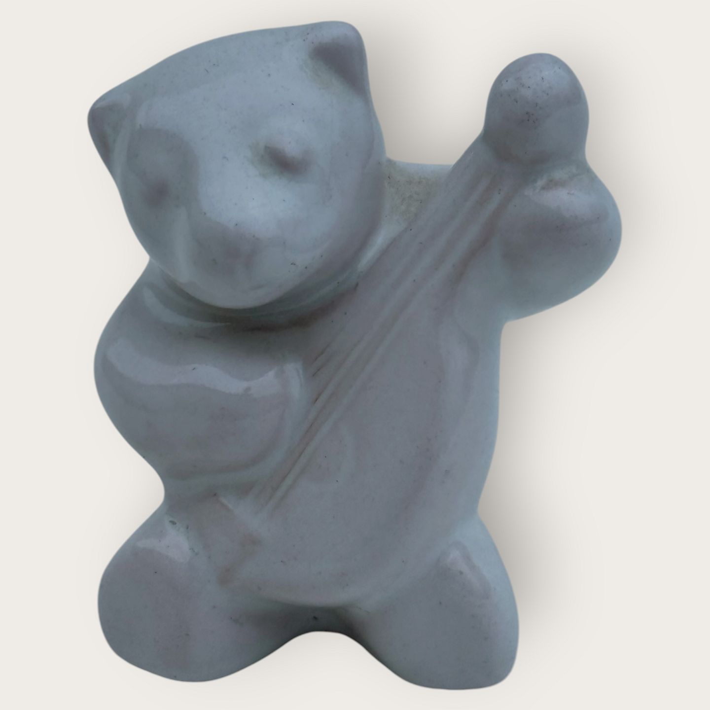 | Bornholmer Keramik, Hjorth, Bärenorchester, Gitarre/Mandoline, Bär mit weißer Glasur, ca. 6,5 x 5 cm *Guter Zustand*