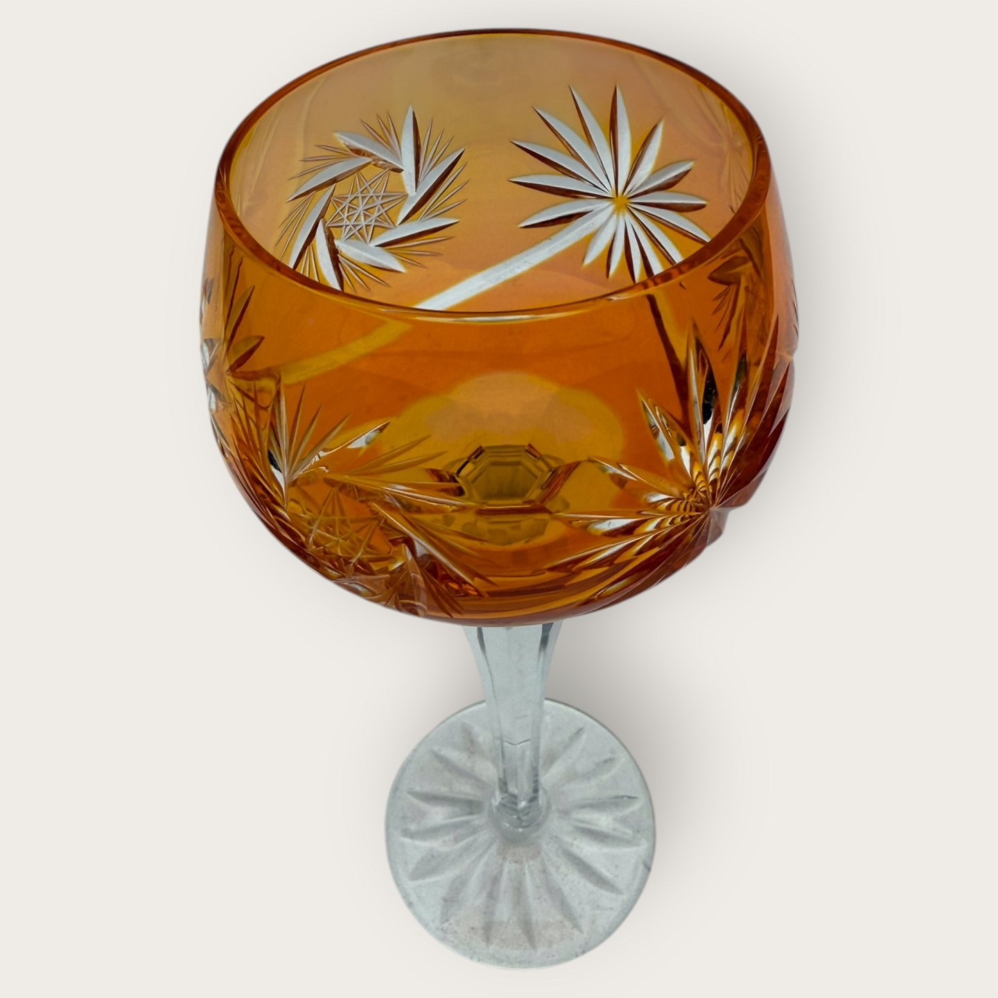 | Böhmisches Kristallglas, Weinglas mit Schliff, gelb, 19,5 cm hoch, 8 cm Durchmesser *Perfekter Zustand*