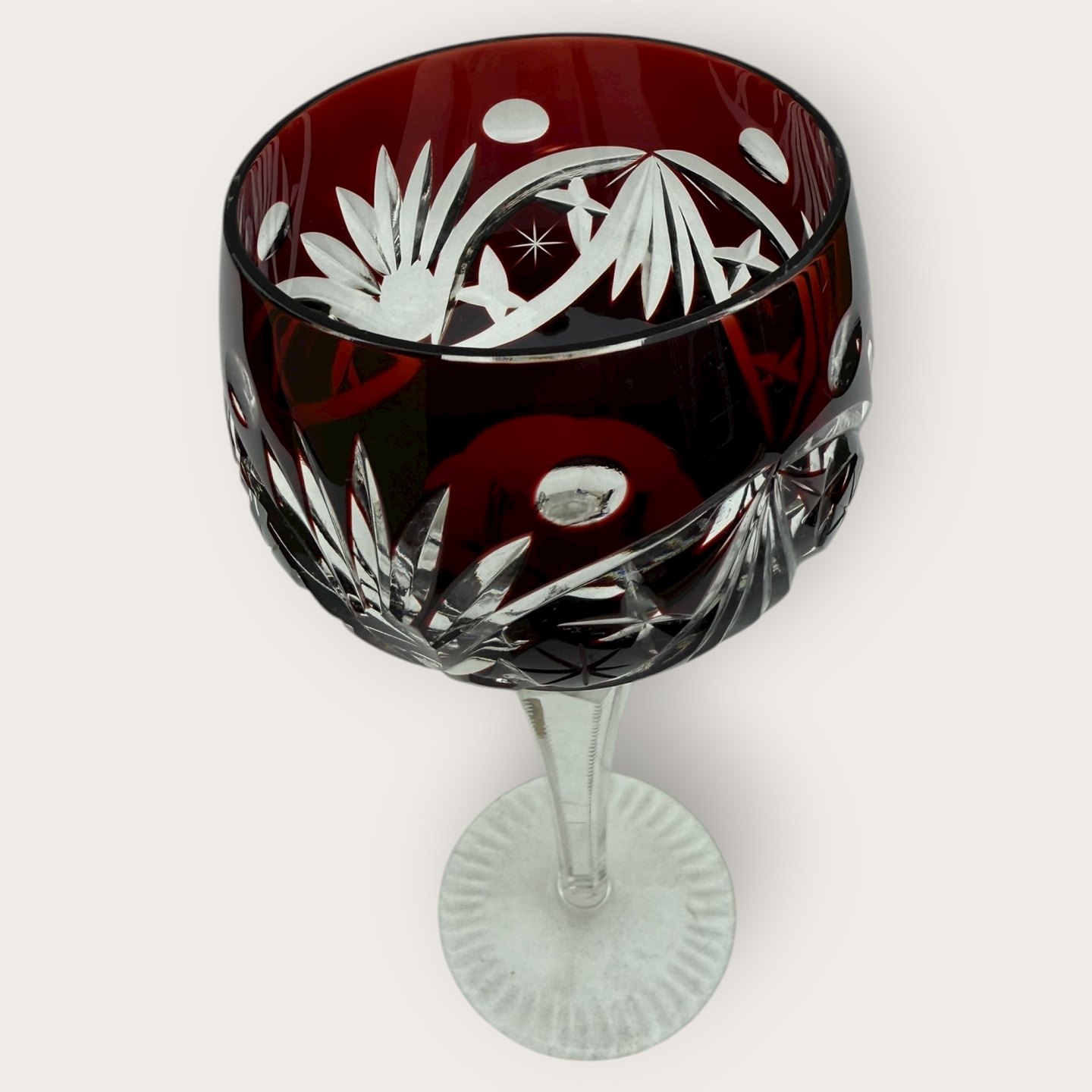 | Böhmisches Kristallglas, Weinglas mit Schliff, Bordeaux, 19,5 cm hoch, 8,5 cm Durchmesser *Perfekter Zustand*