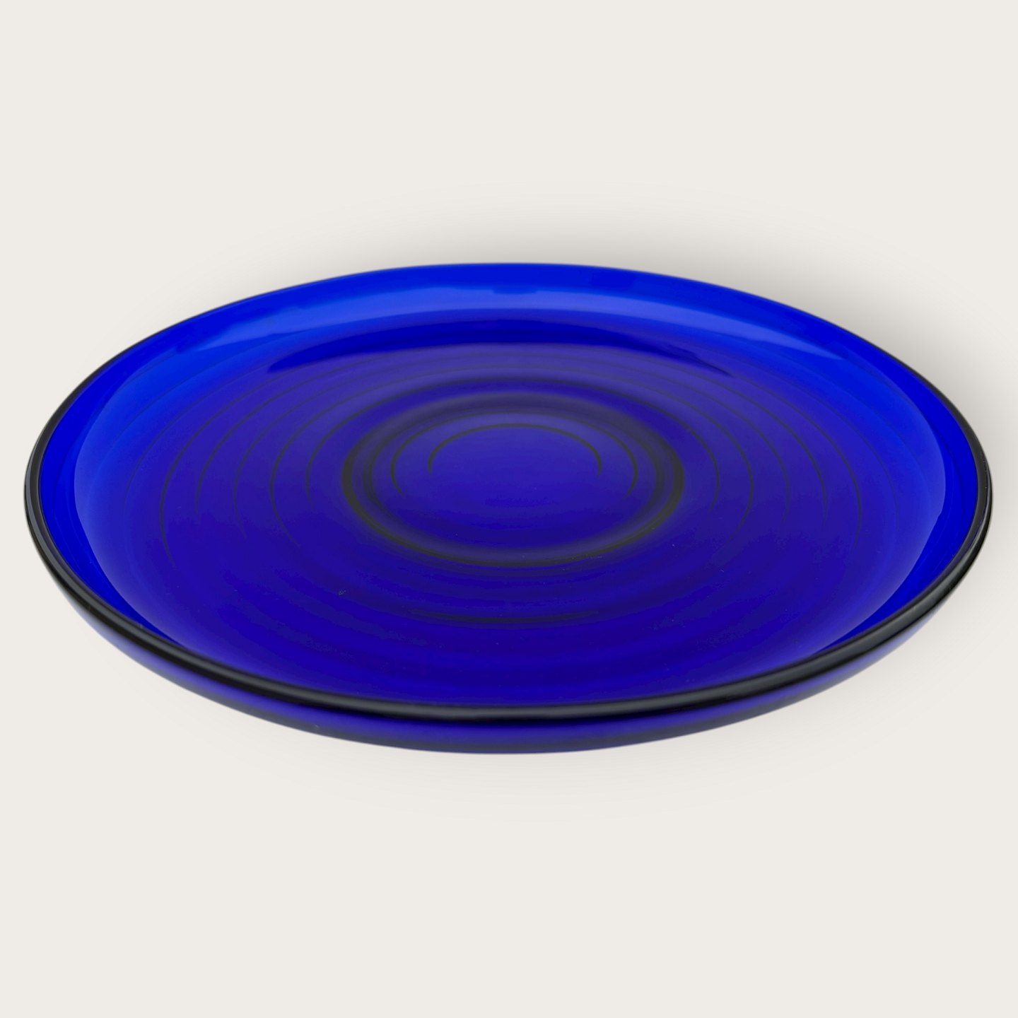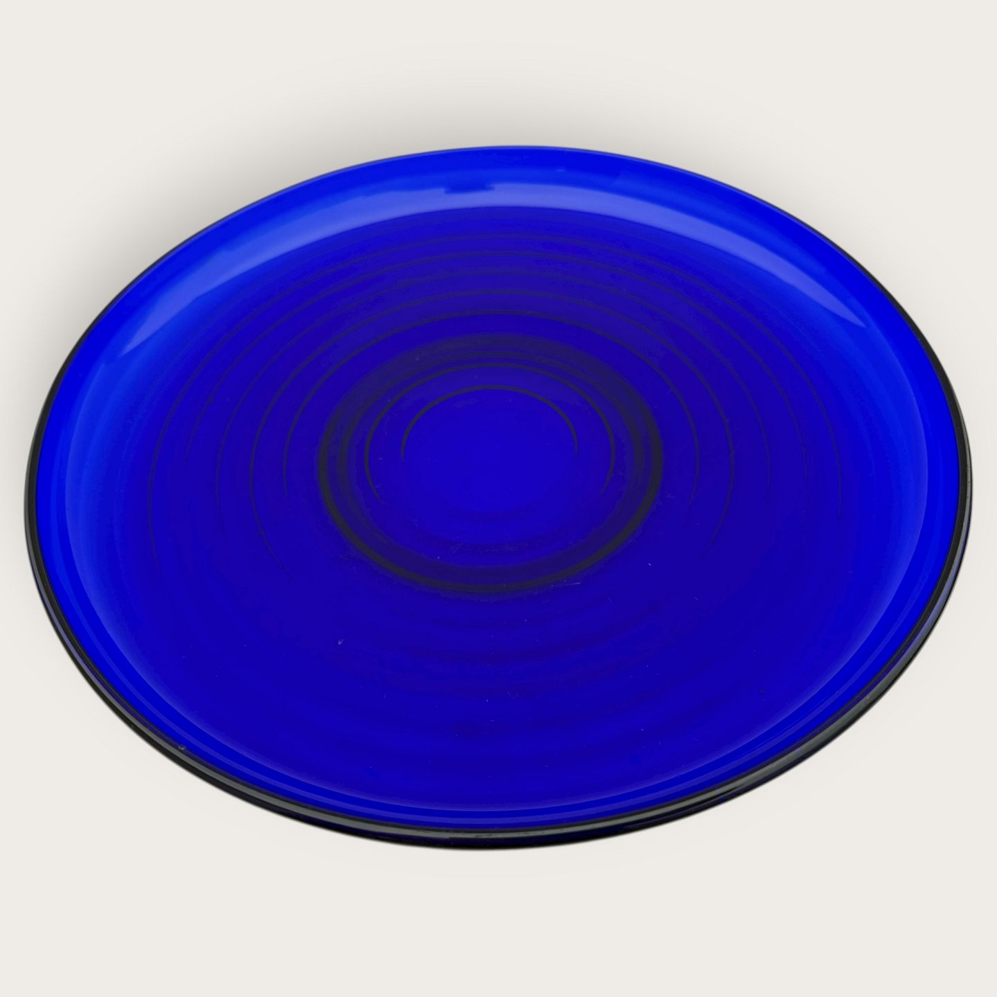 | Holmegaard, Broksø, Pressglas, blaue Schale, 28 cm Durchmesser, Design Jacob E. Bang *Guter Zustand*