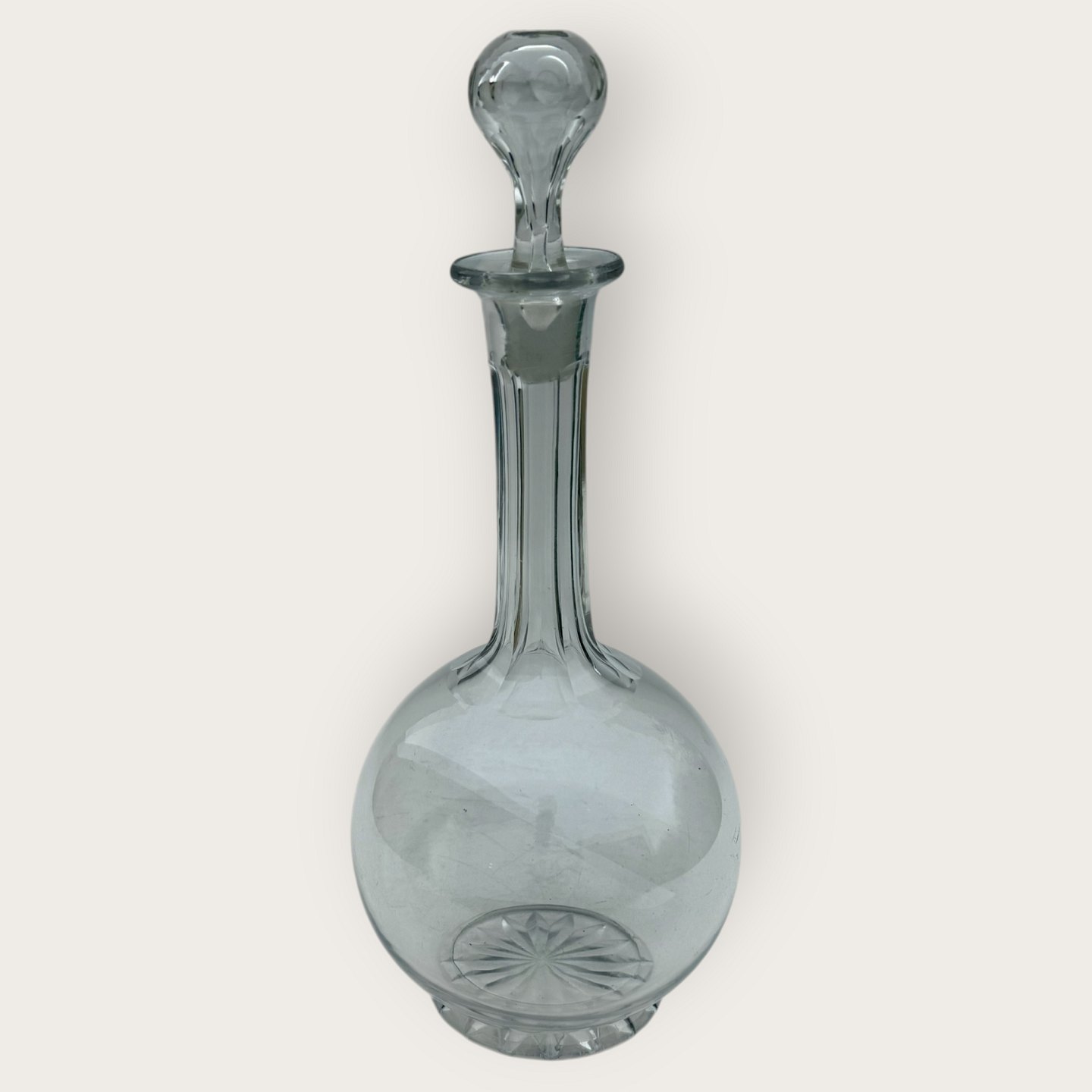 Karaffe mit Einschnitten am Hals, 30 cm hoch und 14 cm im Durchmesser, guter Zustand