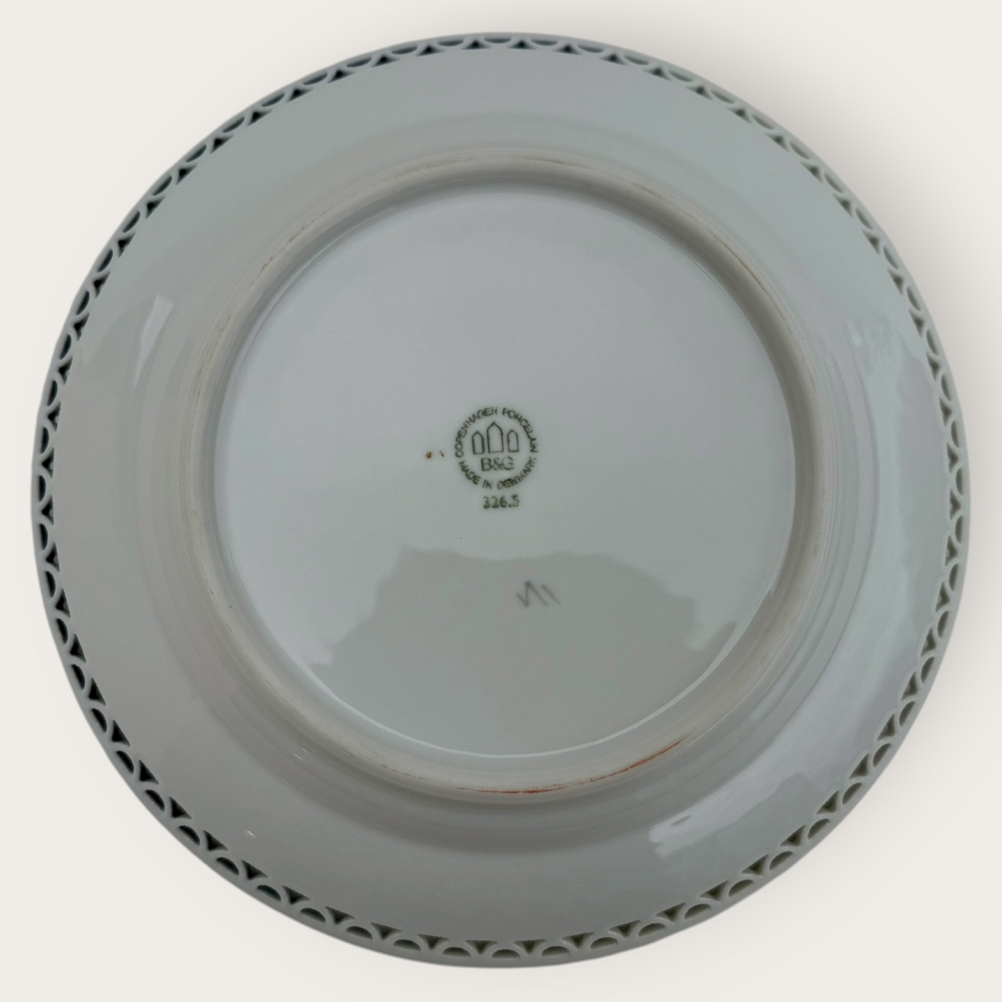 | Bing & Grondahl, Möwe mit Gold, Speiseteller mit durchbrochenem Rand Nr. 326.5, 21,5 cm Durchmesser, Design Fanny Garde *Perfekter Zustand*