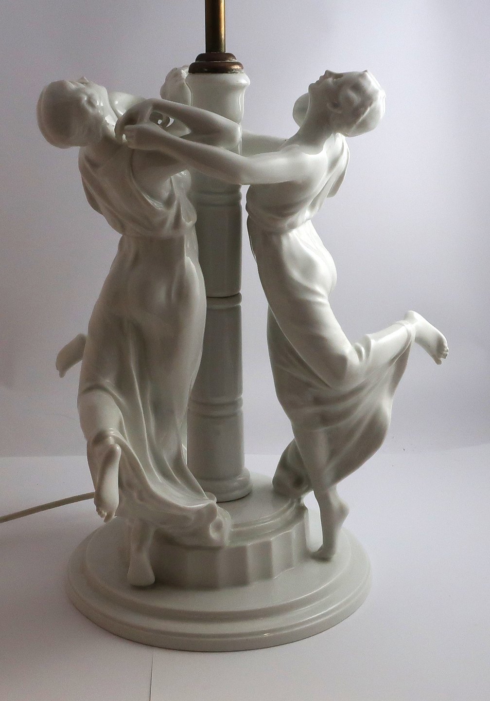 Rosenthal. Porzellanlampe mit tanzenden Mädchen. Porzellanhöhe 32,5 cm, Gesamthöhe der Lampe 60 cm.