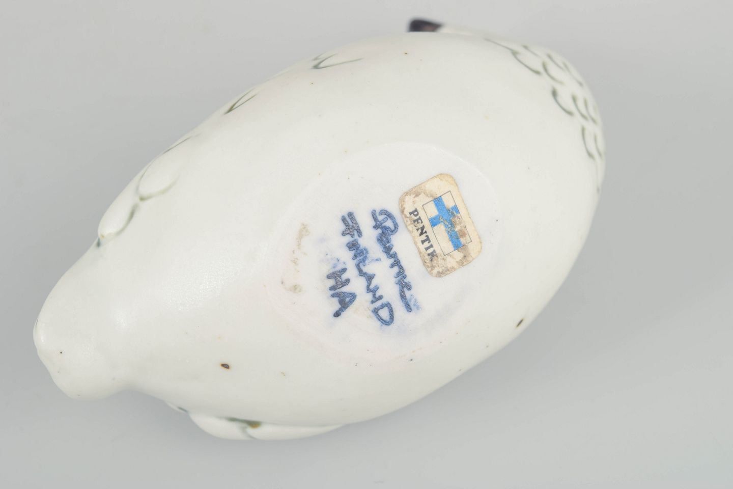 Skulpturel fuglefigur i glaseret stentøj, formet med bløde linjer og enkel dekor i grønne og sorte penselstrøg. Typisk for Allerts organiske formsprog og naturinspirerede udtryk.