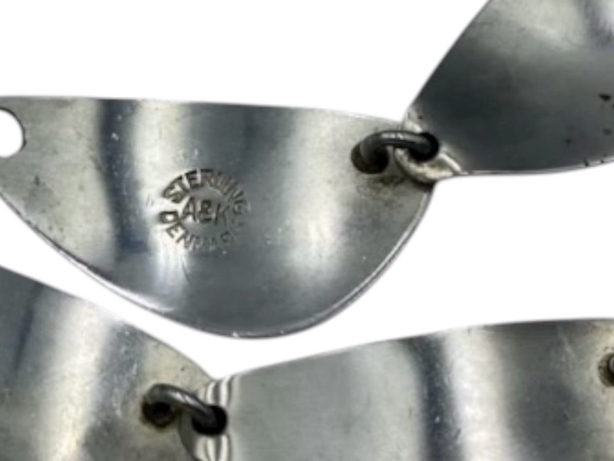 Stemplet "STERLING A&K". Aarre & Krogs Eftf. var sølvsmed i Randers fra 1949 til 1990.