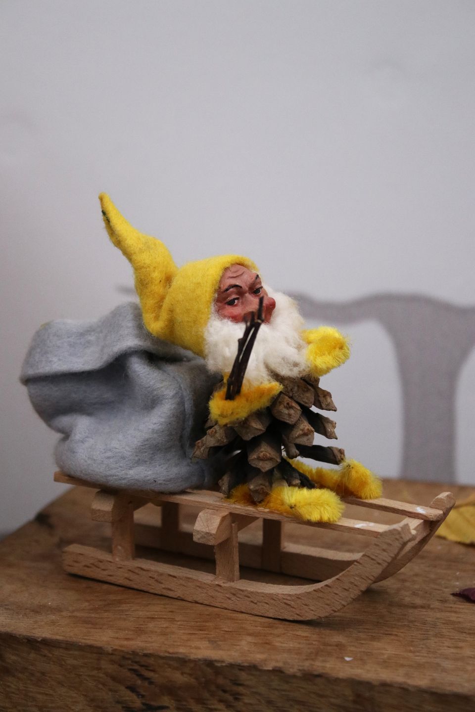 Gammel nisse på trækælk...