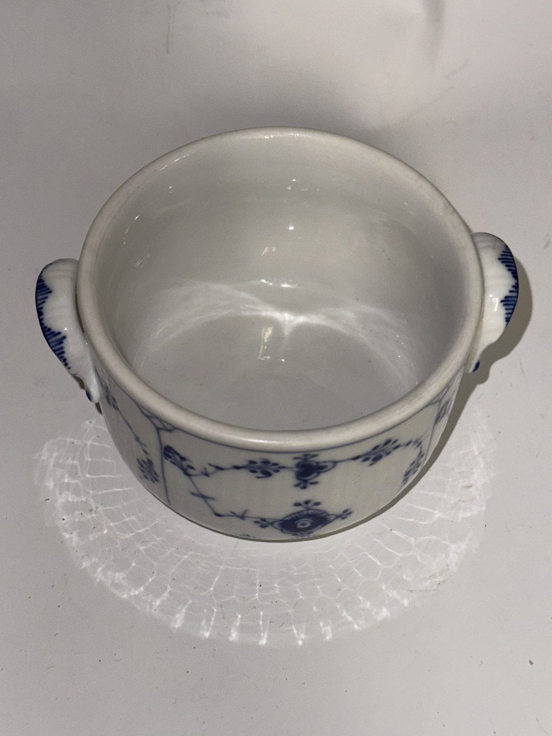 Royal Copenhagen: Sjælden sukkerskål i musselmalet porcelæn